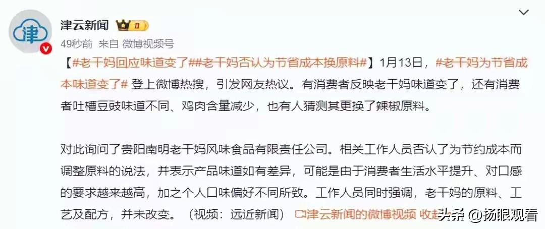 老干妈辟谣!没换原料味道变是嘴刁了😂 老干妈又上热搜!网传换原料省成本
