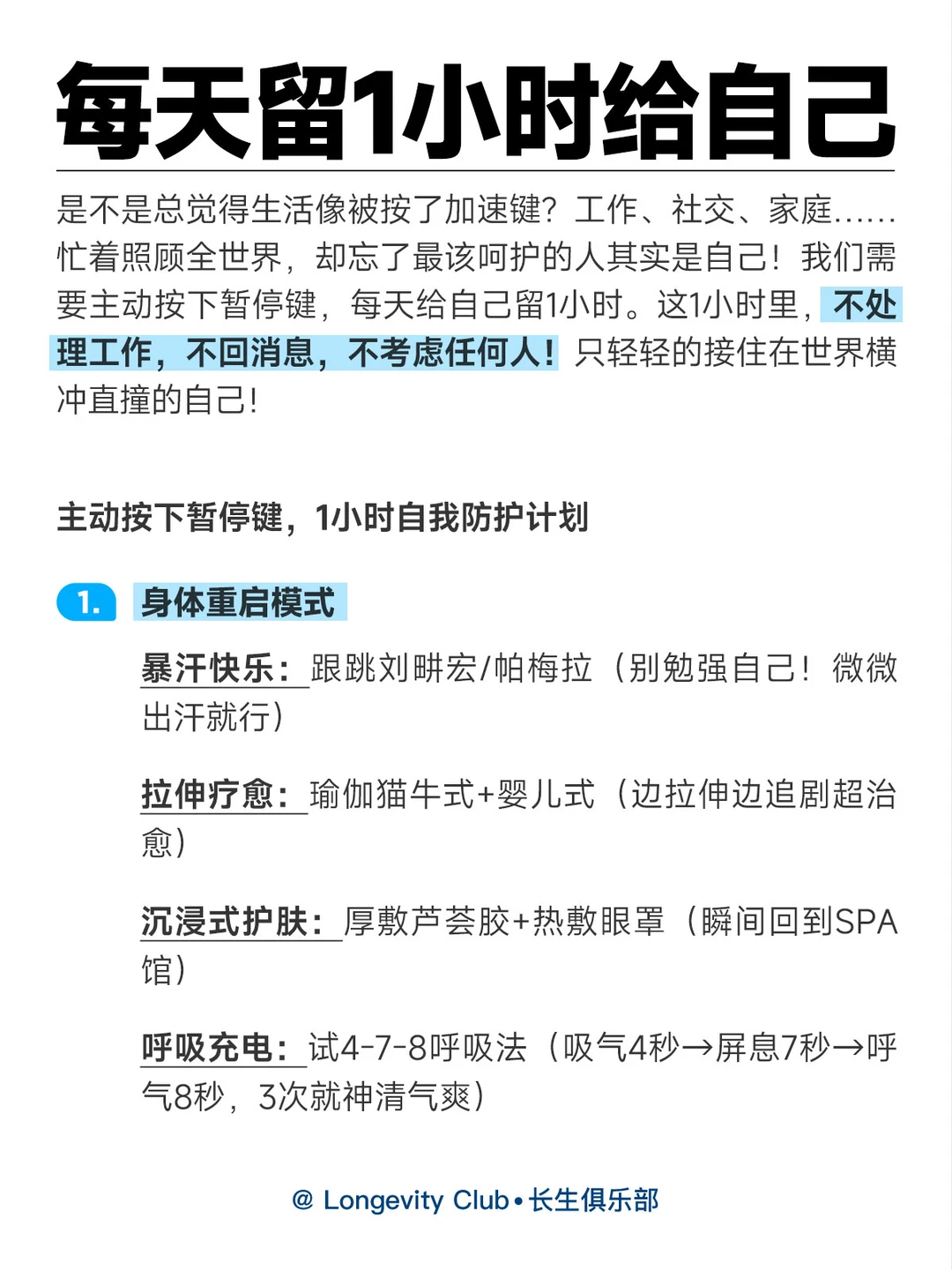 建议:每天留1h给自己