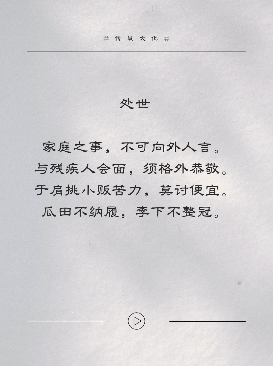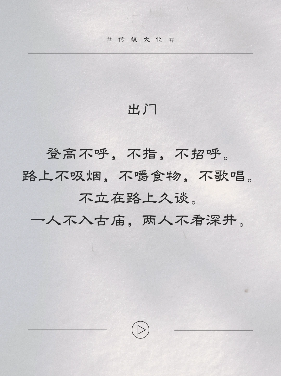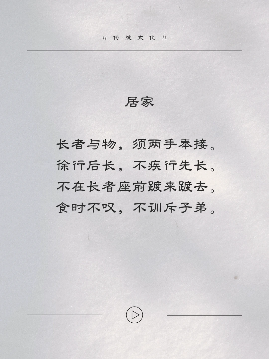 在中国可以不”讲究“,但不能没规矩。俗话说:国有国法,家有家规;没有规矩,不成方圆。祖辈千百年来留下的规矩,子孙一定要重视!规矩是老祖宗传下来的智慧菁华,即使没有读过多少书的农夫,也能说出不少传承下来的规矩。 民国国学大师李炳南老先生,曾把这些老祖宗的规矩教诲汇集成书,即《常礼举要》,以上我们将从居家、处世、聚餐、出门、旅行、庆吊六个方面,为大家分享。