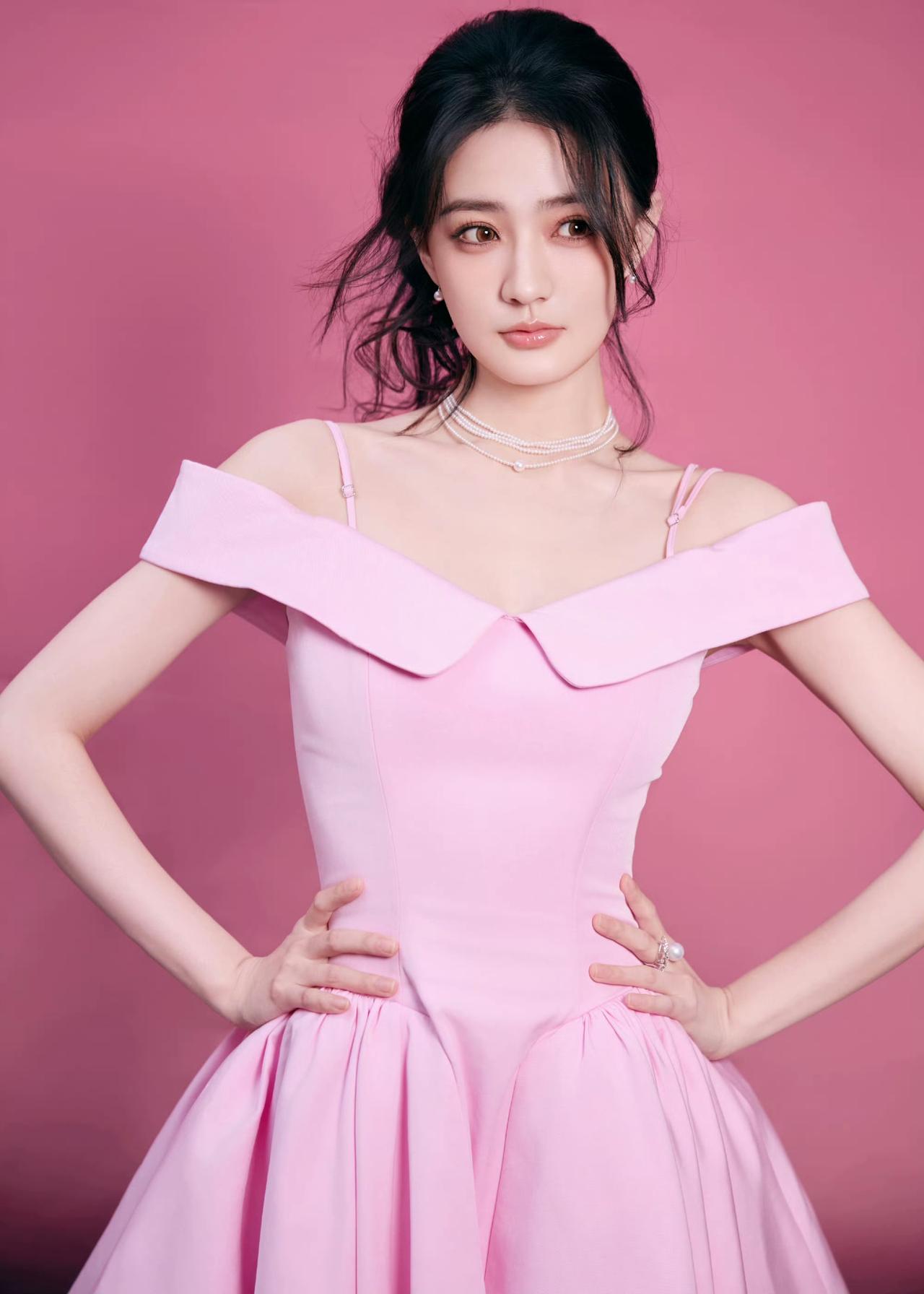 甜美粉色连衣裙,少女心满满!💖✨徐璐!