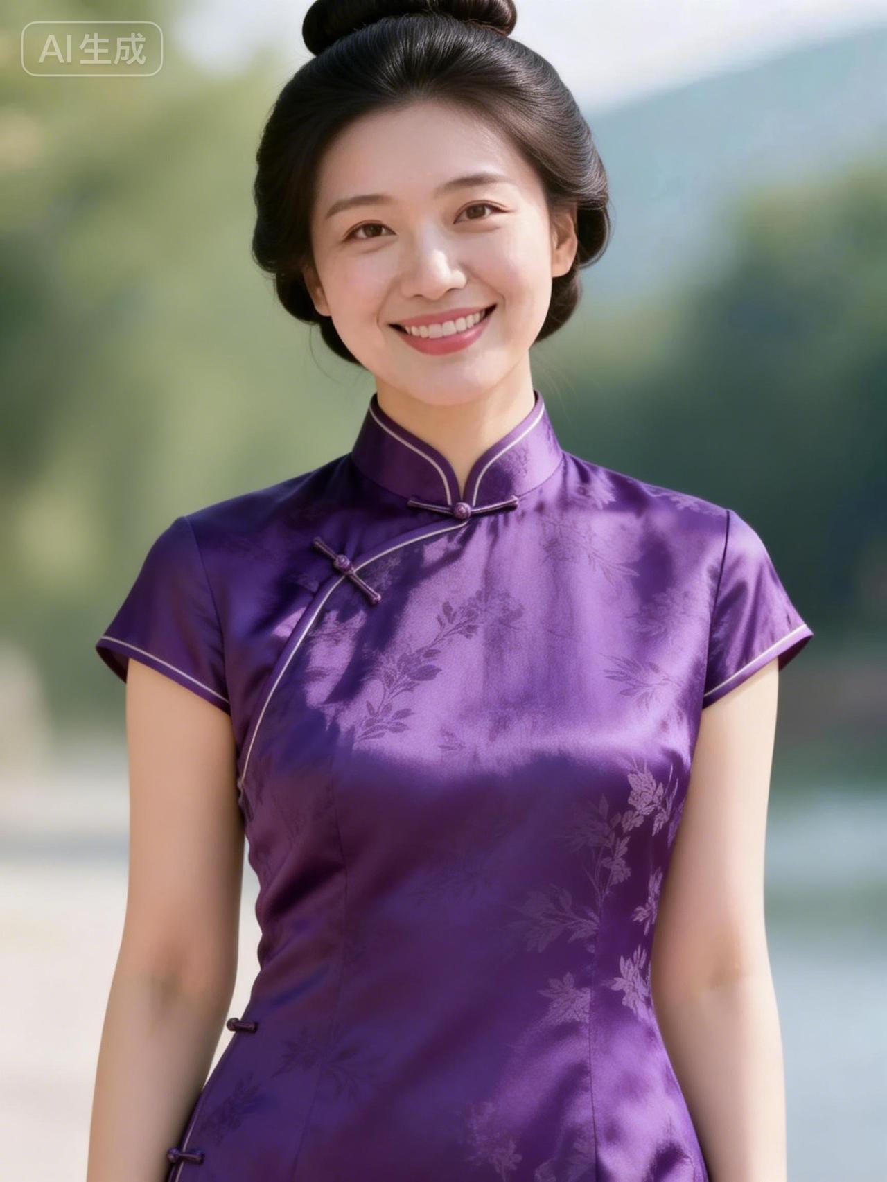 优雅紫色衬衫搭配珍珠饰品,甜美笑容,气质满分!🌸✨