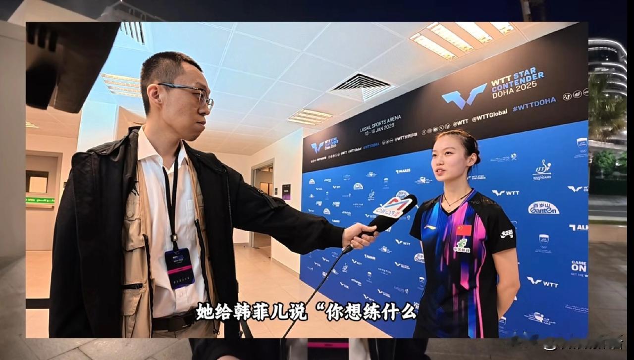 小马哥在多哈的中餐厅唱歌了,唱的挺好听,看到后面的两个外国人还在看他,估计唱的有点忘我,他唱的是《你是我的眼》,小马哥也喜欢经典老歌啊。 每天小马哥都会更新动态,复盘前一天的比赛,他说本来他和摄像想一起去多哈博物馆逛的,但是他一去了比赛场馆,看到中国队我训练,心情非常好,就没去参观博物馆了,让摄像老师给他发过来一些切片。 昨天是多哈球星挑战赛的第一个比赛日,中国队有5场比赛,都赢了。袁励岑是打了两场比赛,第一轮第二轮都赢了,采访袁励岑的时候,他说自己的体力还是很好的,因为比赛才刚刚开始。每次看小袁比赛,大家也心疼志强,一上来第一场比赛小袁就打满五局了。 小马哥说徐瑛彬打完比赛后,他和王皓教练也没有离场,而是在那里留下来看袁励岑的比赛,直到袁励岑赢下比赛,徐瑛彬才去后台接受采访,估计男队就只有王皓和志强两个教练,所以徐瑛彬比赛的时候王皓做场外,因为志强教练在上班。小马哥还采访了韩菲儿,说赛前王晓彤给韩菲儿陪练,问韩菲儿想练什么,她陪她练,小马哥说国乒的氛围很好。