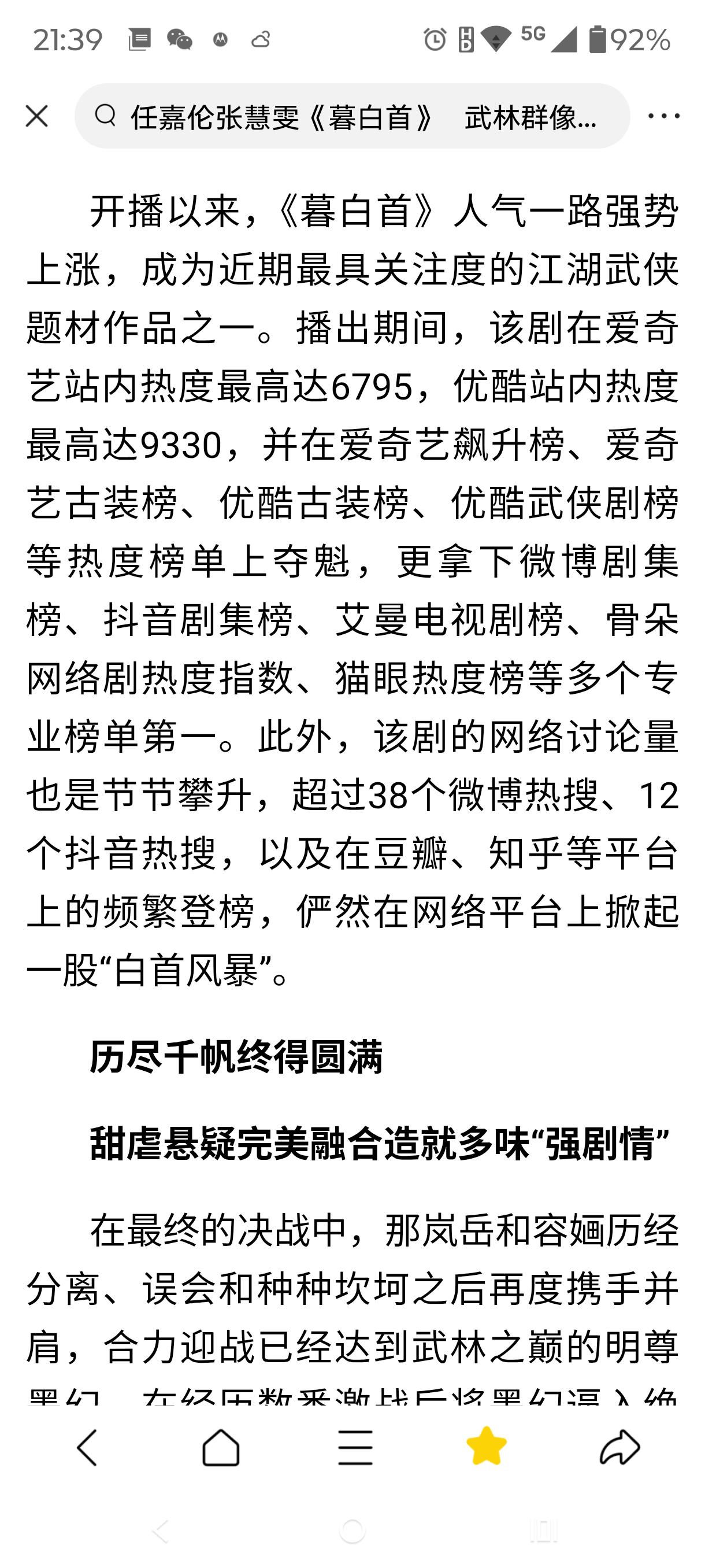 转发当时天涯上有人关于巜暮白首》被恶意打一分评价而写的贴!在哔哩哔哩也见到评论和视频说《暮白首》因为被组团恶意打一分的评价,拉低评分。 以下是转发内容: 一部剧你就说整个过程下来全剧组人员的一个付出,也不该打一星,当然就是那种真的各方面都烂到家的明眼看就是烂片的除外,其实我本人不爱看一部剧打一部的分,说白了就是懒吧。任嘉伦很多剧我都看过,我也是懒得打分,是的,就是懒哈哈。 但是暮白首打到6.9我就不能忍了,这部剧实景,原装剧本,而且反套路剧情,剧中的人物也没有说谁身上在水戏份,所以那些打一星的!就是你们逼着我来打分的。 好了,切入正题,本来暮白首开播前,我个人因为重刷了《天乩之白蛇传说》(天乩真的好看!好看!好看!)和《锦衣之下》,然后这两部剧都是配音界的大佬—阿杰配的,他的声音听多了,总觉得和嘉伦的形象太贴合了,导致我开始真的很担心配音听着不习惯。还有前期林敬这个人物的剧照出来看着不够帅气,用嘉伦的话说就是前期的林敬接地气,但是这一切想法在《暮白首》播出之后,我就改观了,前期的林敬是一个初入江湖的少年,新配音的贴合度还是不错的,而且跟原声真的蛮像的,在此真的佩服这些配音老师,神奇! 前二十集的暮白首真的是喜剧,每天的快乐源泉就是看到林敬出场,作为史上第一个挑粪的男主,这个角色肯定能在我的脑海里存很久,因为太有味道了哈哈哈!本来早期看剧照,我是偏向那岚岳的,虽然这是一个人演的,但是谁让那岚岳帅呢是吧,就如天乩中的紫宣许宣,也是一个人演的,但紫宣就是我的白月光。可是看着看着就不一样了,林敬这性格太讨人喜欢了!真的是开心果,所以区别于天乩,我两个角色都喜欢。 前期的《暮白首》确实因为剪辑问题,让人有些看不懂,特别主演的感情进展,这些确实是这部剧的一个弊端之一,我也不知道他们这样剪的原因何在,嘉伦访谈说过,原来的感情线没有这么快的,但是有些没看到的场面,也是有通过剧中人物来解释,让你知道个始末,我个人来说觉得也是可以了,起码没让我全程糊里糊涂的,而且从林敬带着容婳回到凌虚阁开始,剧情就开始要进入高潮部分了,越来越精彩!也不会有哪里叙述不明,所以打一星的朋友,请问你们起码看完10集了么?你可以不喜欢,但请不要恶意给一部剧刷低分,那真的很low好吗!
