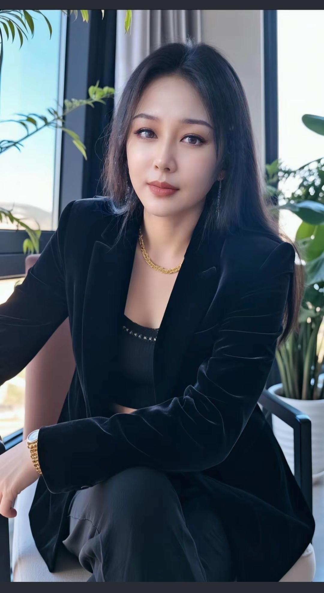 优雅职场风,黑西装搭配金色饰品,尽显时尚与自信!