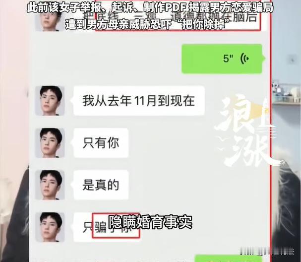 北京,一女子发现男友经常偷偷跑阳台接听电话,有时看到他车内有口红,就以为男友脚踩两条船,假装拿他手机买东西。查看男友聊天记录时,看到男友母亲给他发来小婴儿视频,这才发现男友早就结婚生孩子了。男友备注一位女子为“老板”,这位女子就是他的妻子。女子非常崩溃,本来想要好好谈恋爱,最后却不小心做了三姐。 浪涨新闻1月10日报道了这则新闻。 女子非常生气,因为男友是个博士,还在相关部门工作,她就拿起证件,直接实名举报男友,已经结婚生子,却还要来勾搭自己,让自己不小心成为插足的三姐。举报之后,男友受到处分,评优资格也被取消。 这件事还要从网络交友开始,莫女士年轻貌美。但是因为交际圈子有限,只能在网络上找一位靠谱的男友。 很快,聂某就出现在她面前,点开聂某的交友网站头像,是个帅气的男子。 没多久,莫女士就跟聂某展开了网恋,聊的火热之后,二人就线下见面了,之后就确定了恋爱关系。 得知莫女士找到了男朋友,她的朋友们就相约一起喝咖啡、聊生活。朋友询问莫女士:你的男朋友真的是博士?是博士还会看上你啊?是博士还会到相亲网站找女朋友啊? 朋友的无心之话,却让莫女士心生怀疑,这之后,只要跟聂某相处的时候,她就会多留心。 果然,男友聂某的举动,似乎还真的不大正常。莫女士发现,聂某经常会悄悄跑到阳台去接听电话。 有的时候更加鬼祟,会跑到楼下去讲电话,一讲就是半天,就是为了避开莫女士。 还有一次,聂某半夜里醒来,站在窗边讲话。看到莫女士醒来的时候,聂某就会匆匆挂断电话。 这些是比较细节的事情,还有很怪异的现象,那就是聂某车内的口红。莫女士发现聂某车内遗留了一只陌生的唇膏,莫女士知道,这根本就不是她的。 就是因为这些现象,莫女士怀疑男友一定脚踏两只船,外面还有其他的女人。于是就想要找个借口,查看一下男友的手机。 有一天,莫女士说想要用他手机购买东西,趁男友不注意,竟然发现男友的母亲发来了一条信息,信息内容是一个小婴儿的视频。 继续翻看聊天记录,经过深度了解之后才知道,男友聂某已经结婚生子,他微信里备注为“老板”的这个人,就是他的妻子! 本来还要怀疑,男友是不是在外面有三姐,谁知道,自己竟然成为插足的三姐!一时间,莫女士难以接受。 莫女士去找男友聂某对质,摊牌之后,聂某反而很生气,随后恼羞成怒,想要把这件事的责任推的一干二净,也不解释、也不道歉。 无奈,莫女士决定将这件事公开,直接就给男友聂某举报了——婚内不规矩、还找三姐玩。 很快,相关部门就介入调查,这件事确实属实。这位博士级别的聂某,在相关部门已经被予以处分、当年的评优资格也被取消、事件记入档案。 聂某对此怀恨在心,对莫女士怨念颇深。而他的母亲,更加是无语。 事件爆发之后,聂某的母亲经常拨打电话骚扰莫女士,要么就是发骂人的短信,言辞激烈,甚至还威胁“要出事”“活不下去”等。 更为可恶的是,聂某的母亲还跑到莫女士的楼下蹲守、恐吓、辱骂,带有报复的意味。这让莫女士很害怕,只能拨打了110. 办案人员及时带走了聂某母亲,并且处以200元罚款。事件也才算告一段落。但是莫女士指出,聂某到现在都没有对此道歉。 本案释法:男子已婚已育还到婚恋网上找女子玩,并且隐瞒自己的情况发展了一位三姐,男子的行为是否合理呢? 根据《民法典》第1043条规定,夫妻应当互相忠实,隐瞒已婚身份可能会构成重婚罪。如果跟三姐长期以夫妻名义共同生活,最高会被判处2年有期徒刑。 男子的行为,不管在法律层面,还是在道德层面,均不合理,隐瞒已婚已育的身份欺骗他人发展关系,这是对伴侣的被判,可以说是双向背叛。 作为原配如果得知此事,也可以搜集证据,让自己的这位博士丈夫为自己不道德、不合法的行为,付出法律代价。 看完本案,大家内心都作何感想呢,不妨一起来讨论吧。