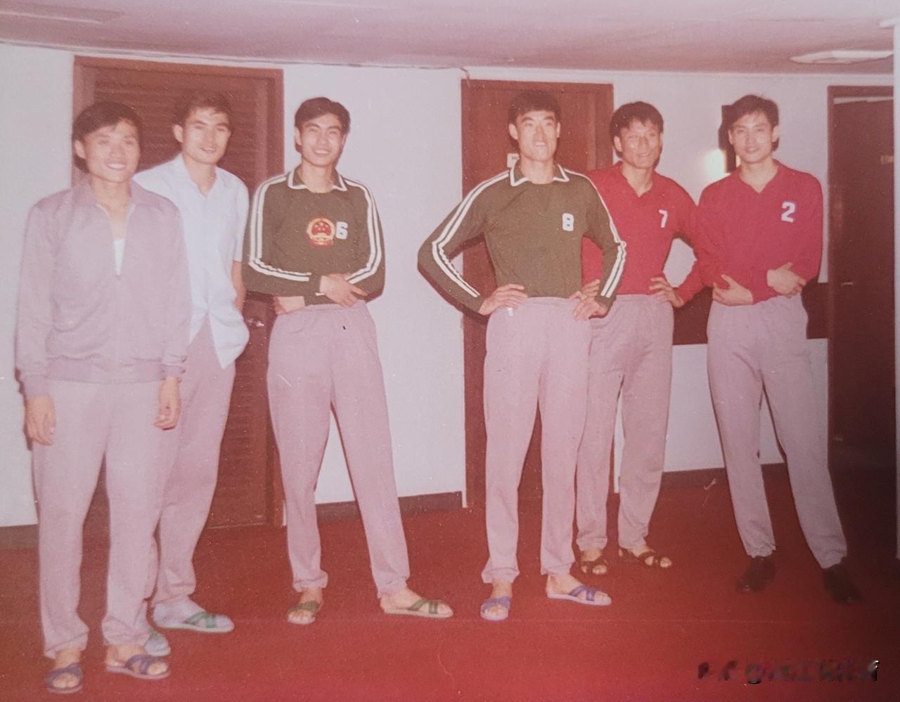 老江苏男排的8号球员穿越成了中国男排现役接应温子华,两人相似度超过90%。这张江苏男排老照片中只认识左一秦毅斌(五连冠老女排陪打教练)、左三曹平(原中国男排传奇名将),其余人认不出来了。不过8号球员与现役河北男排主力接应温子华的确很像,不知道是否有亲缘关联。