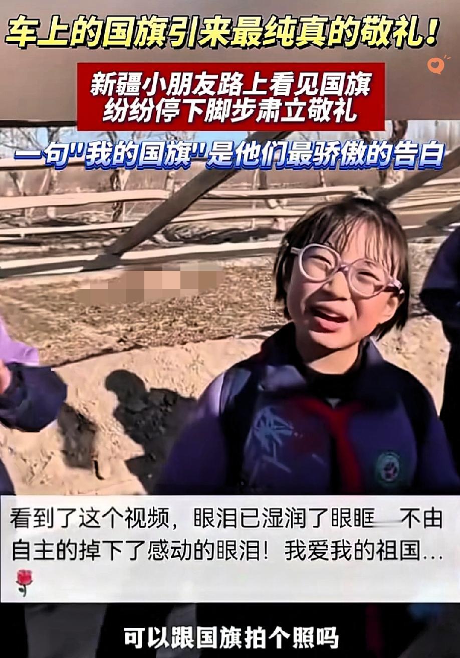 这一敬礼,看哭无数人! 少年的赤诚才是最动人的光 谁能拒绝一群对着车顶国旗认真敬礼的小朋友? 新疆一男子开车回家,被一群放学娃拦住敬礼,纳闷之余才发现,原来是自己车顶的五星红旗,让孩子们停下了脚步。 一句“老师说见了国旗就得敬礼”,瞬间戳中了无数人的心窝。 这哪里是简单的敬礼,分明是刻在骨子里的家国情怀。 孩子们挺直的小身板、亮闪闪的眼神,还有那声整齐划一的“当兵!报效祖国!”,比任何豪言壮语都有力量。 学校把爱国教育融入日常,才让这份赤诚从小就在孩子心里扎了根。 少年强则国强,从来都不是一句空话。 这群孩子的举动,就是最好的证明。你见过哪些让你心头一热的爱国瞬间?