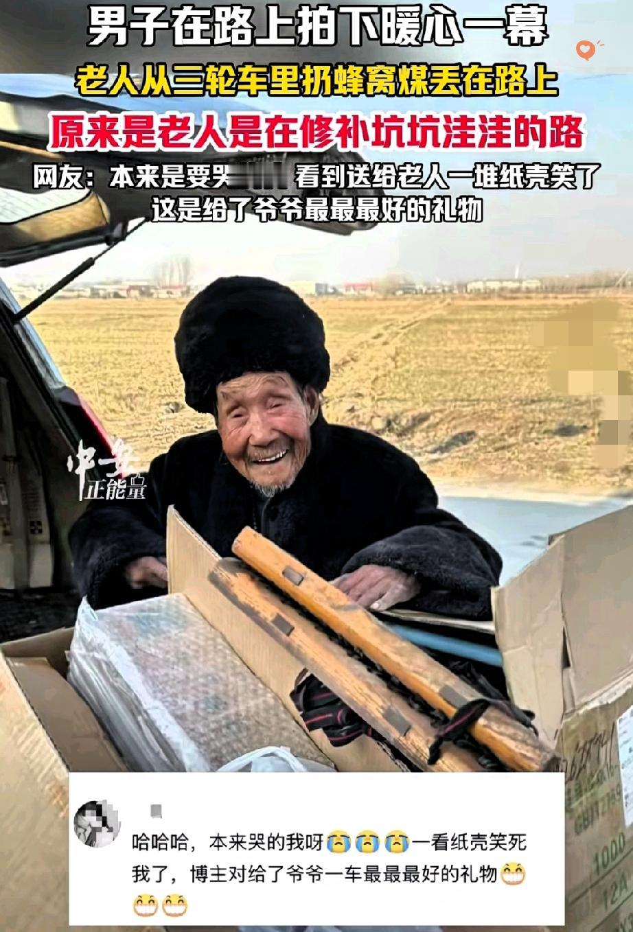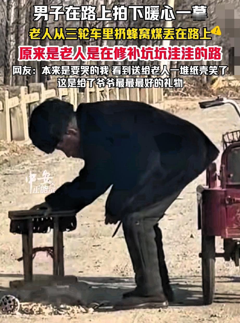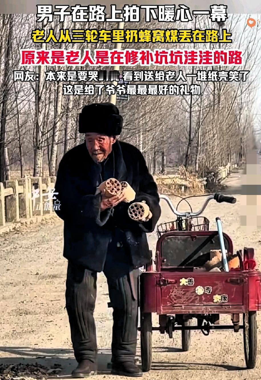 这堆纸壳,比任何红包都戳心! 大爷的笑看哭了 谁能想到,山东临沂一位大爷扔蜂窝煤的举动,藏着这么暖的心意? 原以为是随手丢弃,实则是用蜂窝煤填补路上的坑洼,这份默默为他人着想的善良,瞬间戳中了无数人。 而拍摄者送上的一车纸壳,更是把这份温暖拉满了。 比起轻飘飘的钱财,一车纸壳才是懂大爷的礼物。 大爷靠拾荒补贴生活,这份纸壳既是实际的帮助,更是对他善意的回应与尊重。他笑得满脸皱纹的样子,让我们明白,善良从不是单方面的付出,而是你为他人撑伞,有人也会为你递上暖阳。 最动人的善意,从来都是双向奔赴的。 你见过哪些看似普通却满是温情的互相成全?