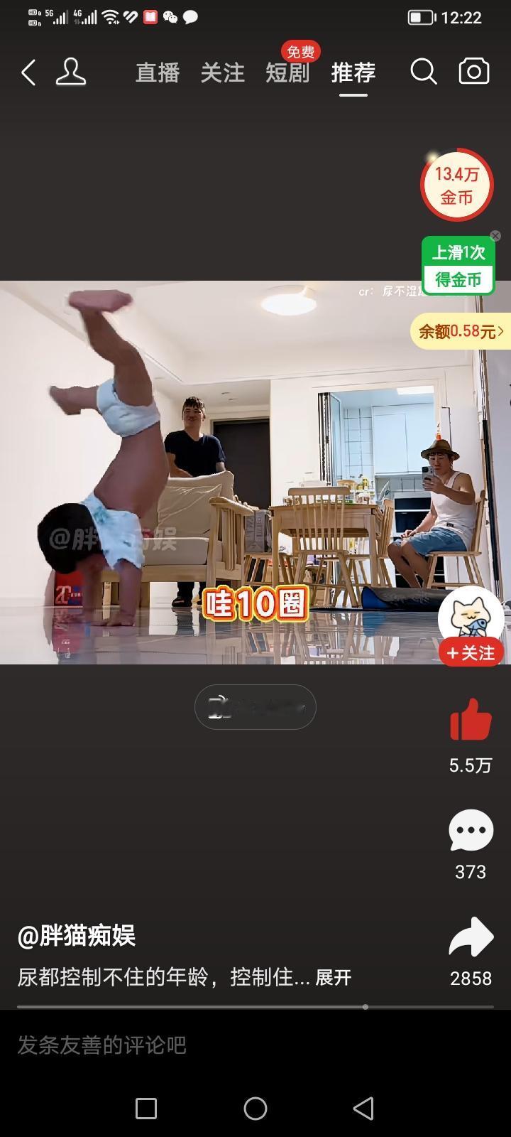 在绝对天赋面前,有时候努力一文不值。刷到一个还在穿尿不湿的小孩,已经可以双手撑地,双脚向上举起连续转18个圈了。起因是一个父亲教孩子声音大了点,邻居以为父亲虐待小孩,于是孩子父亲邀请邻居来家里查看,最后邻居将小孩连转18圈视频上传到网上。(图片信息来源:胖猫痴娱)天赋 天赋型孩子 子女天赋 儿童天赋 人类天赋 孩子运动天赋
