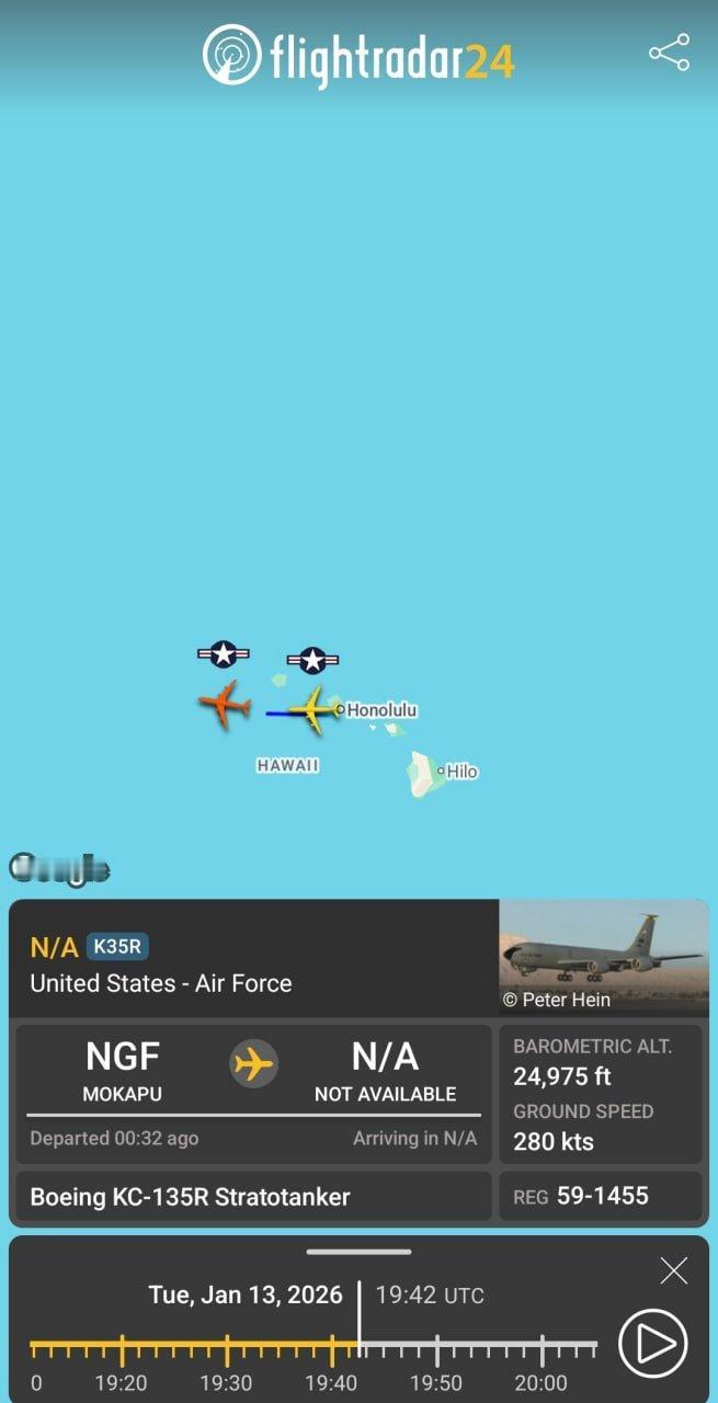 “开战倒计时?”当地时间2026年1月14日,世界航行航线系统的数据显示,美军继续全世界范围内,向中东, 西太平洋方向集结。这是非常异常的美军飞机动向,特别是美国对伊朗随时威胁开战的情况下:美国空军8架KC-135大型加油机已降落在夏威夷基地,正在准备向西太平洋,中国周边的琉球基地飞行。在2025年6月,美军对伊朗核设施发动打击前,夏威夷基地曾是美军B-2隐身轰炸机,加油机等,前往中东的首个停靠点。目前已有美国空军KC-135R大型加油机从夏威夷起飞,正向西飞行,随时抵达琉球群岛。目前美国空军至少两架KC-135R加油机和一架KC-46A加油机,从檀香山起飞,向西飞越太平洋前往亚洲方向,计划抵达琉球基地。 看来依然是美国空军计划组织对伊朗的轰炸了,B-2隐身轰炸机在哪儿呢?很可能美军B-2隐身轰炸机没有开卫星通信信号,而是跟随KC-135加油机,组成编队,隐蔽飞行。上次轰炸伊朗的美军B-2隐身轰炸机,是从大西洋方向过去的。美军B-2隐身轰炸机在太平洋这边出现,就是吸引注意力的。也不排除,美军B-2隐身轰炸机这一次从太平洋方向出动。从美国空军怀特曼基地的出发的B-2隐身轰炸机,可以不间断飞行18小时,打击伊朗,途中三次空中加油,通讯极少。美军短期内要打的话,感觉要么是零敲碎打意思一下,要么就是美军空袭定点清除,对于伊朗这个体量的要大打,美国最快也得需要1个月来集结足够的海军、空军以及防空力量。 除了美军加油机调动,实际上还有3架美国空军B-52战略轰炸机已经起飞,飞行方向不明。对于美军大规模调动。在1月14日,伊朗海岸附近,美国海军一架MQ-4C战略侦察机正在飞行:一架美国海军MQ-4C“海神”高空侦察无人机,已从阿布扎比阿勒哈利法空军基地起飞,前往霍尔木兹海峡进行例行巡逻,该海峡距离伊朗海岸仅数英里。在西太平洋,东海,琉球群岛,大批美军战机升空,包括了2架美国空军KC-135R战略加油机,美国P-8A海神反潜,MQ-4C“海神”高空侦察无人机等集结,美军在中国周边进行如此大的动作,不知道意图是什么。而美国方面也认为,美军活动看起来可疑。 美国方面认为,这一次美军如果轰炸伊朗,考虑到伊朗S-300、霍克防空导弹射程,可以看出美国空军战机可以从地中海和阿拉伯海,发射JASSM-ER空对地导弹,轰炸伊朗的大部分地区,美国空军的战斗机,轰炸机都无需穿透伊朗领空。目前伊朗上空仍然没有净空,伊朗防空部队,伊朗空军没有任何战备和动员的信息。