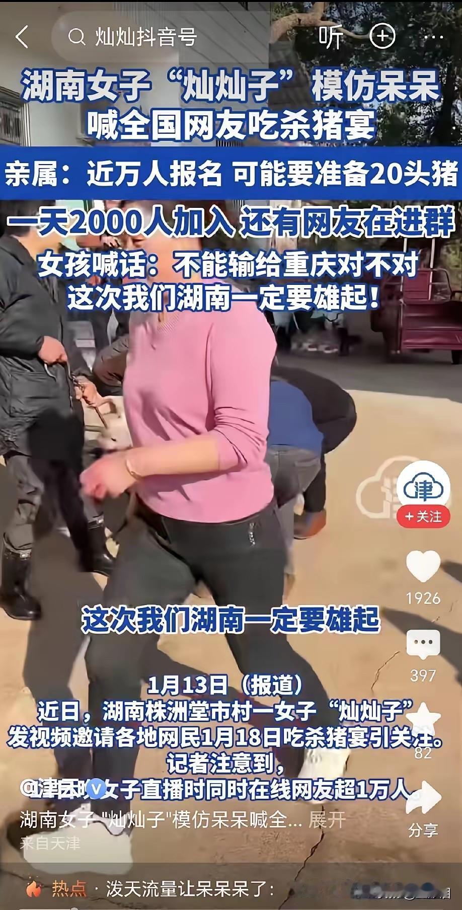 网络的暴火真的像一阵风,一会儿某个事情全网在爆,一会儿又因为一个事情全网在爆,让人感觉有些事莫名的火了,然后一堆人去模仿,像前几天重庆的呆呆,跟网友说杀猪找人按猪这事,火得有些莫名其妙。 我也是农村出身,小时候家里也杀过猪,只要家里杀猪,找个杀猪师傅,找同村两三个男的过来帮忙就好了,有肉的事,整个村找不到几个按猪的人吗?那绝对不可能。 这几天看到呆呆火了,网上好多人有样学样的,在全网找人按猪,不就是杀个猪吗?有必要全网摇人吗?目的很明显啊,杀猪不是目的,就想要流量,要嘉年华,做网红,真的来去一阵风,真的有那么多人有闲功夫,个个拿个手机开直播,闻着味就过去了。流量这亊 网红流量 流量行为 网红流量经济 网络蹭流量 网红流量危机 网红流量争议