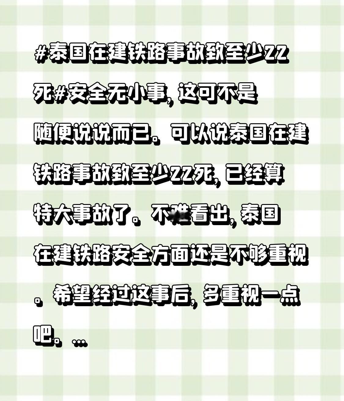 不难看出,泰国在建铁路安全方面还是不够重视。希望经过这事后,多重视一点吧。 不然