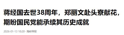 就在刚刚,   台"国民党"主席郑丽文正式宣布!   1月13日一早,郑丽文站在镜头前,表情坚定,语气缓慢却不含糊:“我郑重宣布,作为国民党主席,我将前往中正纪念堂谒陵,向蒋经国先生致敬。”   熟悉岛内政治生态的人都清楚,国民党主席前往谒陵致敬先辈,本就是延续历史传承的常规举措,承载的是对党派历史脉络的尊重与接续。   郑丽文此次选择在1月13日这个特殊时间点宣布此事,更有着深层的历史寓意,这一天正是蒋经国先生的逝世纪念日。   随后,郑丽文便带领国民党副主席李乾龙等党务主管,一同前往桃园大溪头寮的蒋经国陵寝完成献花致意仪式。   谒陵仪式结束后,郑丽文接受了现场媒体的联访,她坦言蒋经国一生的风范与事迹,始终是自己这一代国民党人的学习典范。   郑丽文强调,在当前国际局势诡谲多变、台海氛围紧张的之际,重新回顾并反思蒋经国留给后世的精神遗产,显得尤为必要。   她透露,每次前来献花后,自己都会特意进入陵寝向蒋经国先生致意、倾诉心情,过去常常期盼前辈能给予更多勇气与智慧。   而这一次,郑丽文则在心中默默自我期许,希望能效法蒋经国“用对的人、做对的事”的领导精神,带领国民党走出当前困境。   郑丽文回望历史,她提到台澎金马曾历经诸多风雨考验,却依然成功挺过挑战,还创造了亚洲四小龙的经济奇迹。   郑丽文认为,这段历史足以证明,即便身处艰困环境,只要方向正确、举措得当,依然有能力突破困局开创局面。   面对当下内外交迫、局势紧张的岛内现状,郑丽文直言自己期盼国民党能承续蒋经国时期的历史成就。   她希望国民党能在这个世代再度创造属于台湾的发展奇迹,为台海和平主动打开一扇窗、搭起一座沟通的桥。   郑丽文进一步细化目标,她强调希望能在未来两到三年间突破当前僵局,扭转台海战云密布的不安氛围。   她渴望让台湾得以在稳定的环境中稳健向前发展,让岛内民众摆脱持续已久的安全焦虑。   联访中,郑丽文还借机重申了自己的两岸身份认同,她对着媒体明确喊话:“我们是台湾人也是中国人,这两个身份从不抵触。”   郑丽文解释道,自己土生土长在台湾,当然是台湾人,但这一身份并不妨碍同时身为中国人的归属。   她认为这种身份认同本就是包容开放的概念,不该被人为扭曲和割裂。   郑丽文痛批民进党势力用狭隘排外的思维,将身份认同高度政治化,这种封闭排斥的操作,完全无助于台湾社会的良性发展。   她直言任何文化与身份的认同,都应秉持包容开放的心态,不该被当成制造政治仇恨的工具,这种操作本身就不健康。   谈及当前岛内的政治环境,郑丽文毫不避讳地指出,赖清德就任之后不留底线地动用司法打压异己,意图团灭在野党。   她举例民进党用电子脚镣这种滥用权力的方式羞辱政敌,用心粗暴且明显,可惜无论外界如何呼吁,都换不回赖清德的良心。   郑丽文呼吁,身为在野党的国民党必须团结一心,秉持卧薪尝胆的决心,牢记身上承载的沉重任务。   她强调必须通过选票重新赢回司法正义,借助政党轮替让台湾社会重回正轨,这是当前最重要的目标之一。   同时,郑丽文也向媒体同步了党内近期的核心工作进展,她表示国民党的提名作业正在顺利推进,蓝白合作也在循序渐进地推动。   郑丽文对整体发展态势持乐观态度,她透露蓝白新北市长人选有望通过内部协调产生,若进展顺利,希望能在春节前完成提名作业。   她明确表态,国民党会先完成内部提名流程,待确定自身人选后,再与民众党启动协商机制,最终通过合理方式敲定共推人选。   郑丽文的这一系列表态,既延续了国民党谒陵致敬的历史传统,也借由这一公开场合,清晰传递了自己的施政方向与两岸立场。   在当前岛内政治博弈激烈、台海局势复杂的背景下,她的每一个举动和表态,都被外界视为观察国民党路线走向的重要信号。   有党内人士分析,郑丽文此次谒陵并发表相关言论,既是在强化国民党的历史传承认同,也是在凝聚党内共识,为后续的选举布局与政策推进铺垫基础。   外界则普遍关注,在郑丽文的带领下,国民党能否真正团结力量,在两岸政策上持续秉持“九二共识”,为缓和台海局势发挥实质性作用。   毕竟对台湾民众而言,无论政治立场如何,稳定的发展环境、和平的两岸关系,才是大家最根本的共同诉求。   郑丽文此次谒陵所传递的承续历史、推动和平的信号,若能真正转化为实际行动,或许能为当前紧绷的台海氛围注入一丝缓和的契机。