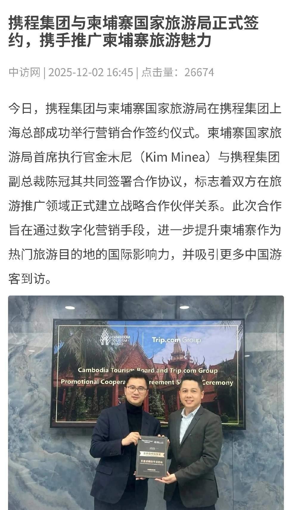 重磅消息:市场监管总局对携程旅游集团立案调查。 就在上月,携程集团刚与柬埔寨旅游局正式签约,推广柬埔寨旅游。