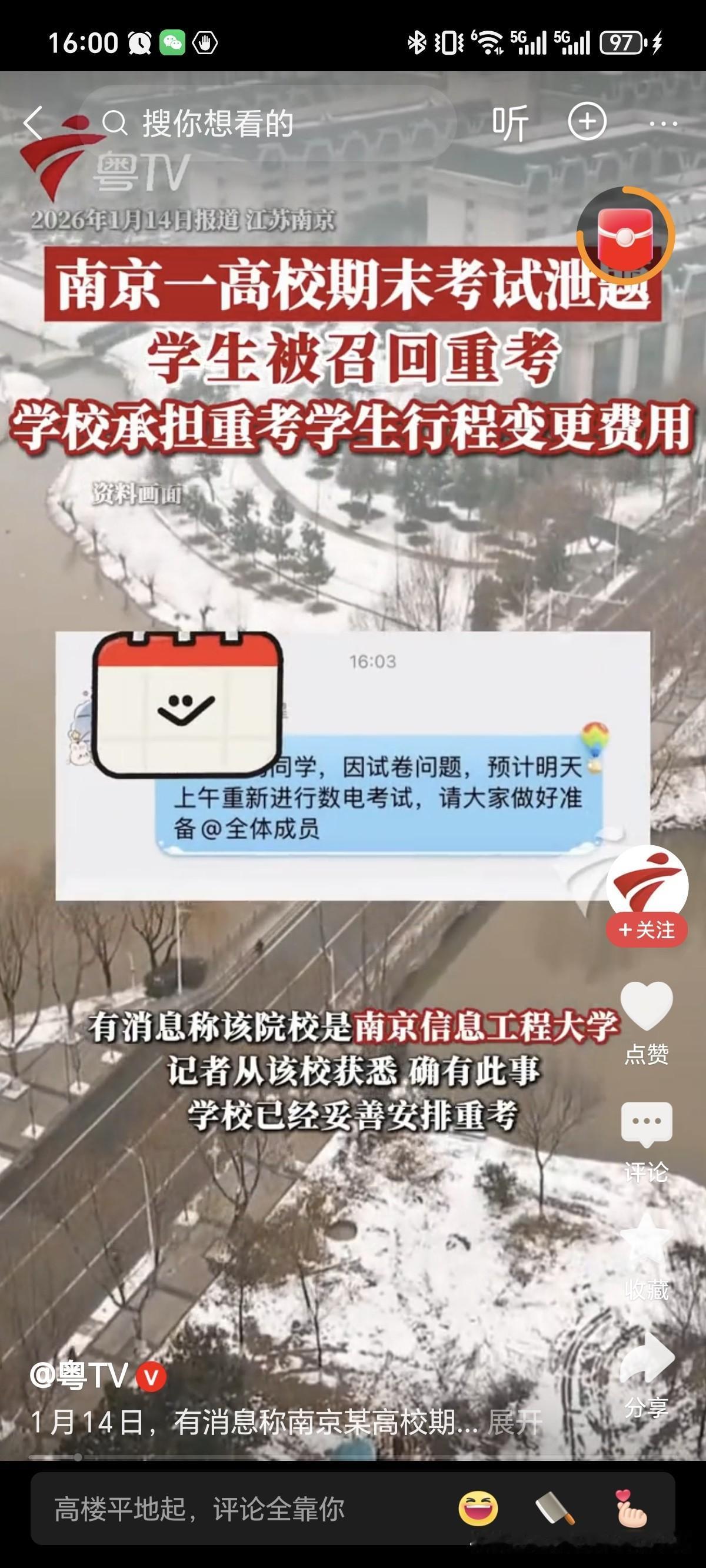 南京一高校期末考试泄题! 2026年1月,南京信息工程大学期末考试发生泄题事件,学校紧急安排重考并承担学生行程变更费用。考试试题启用前属国家秘密,泄题不仅违纪更可能违法,涉事者或面临行政处分乃至刑事责任。 泄题途径多元,包括人为泄密、系统入侵及命题保管等环节的管理疏漏。事件暴露高校在命题管理、技术防护及过程监控等方面存在短板。 从民生视角看,泄题直接损害教育公平,践踏多数学生的努力;增加学生家庭额外成本;侵蚀公众对高等教育的信任;导致人才选拔失真;并污染校园诚信文化。筑牢考试安全需技术与制度双管齐下:升级系统防护,严格流程管理,同时加强法治威慑与诚信教育。高校泄密 试题泄漏 学生信息泄漏 高校舞弊 南京期初考试 南京信息工程大 南京六上期末 学术泄密 本科论文查重后会被泄露吗?