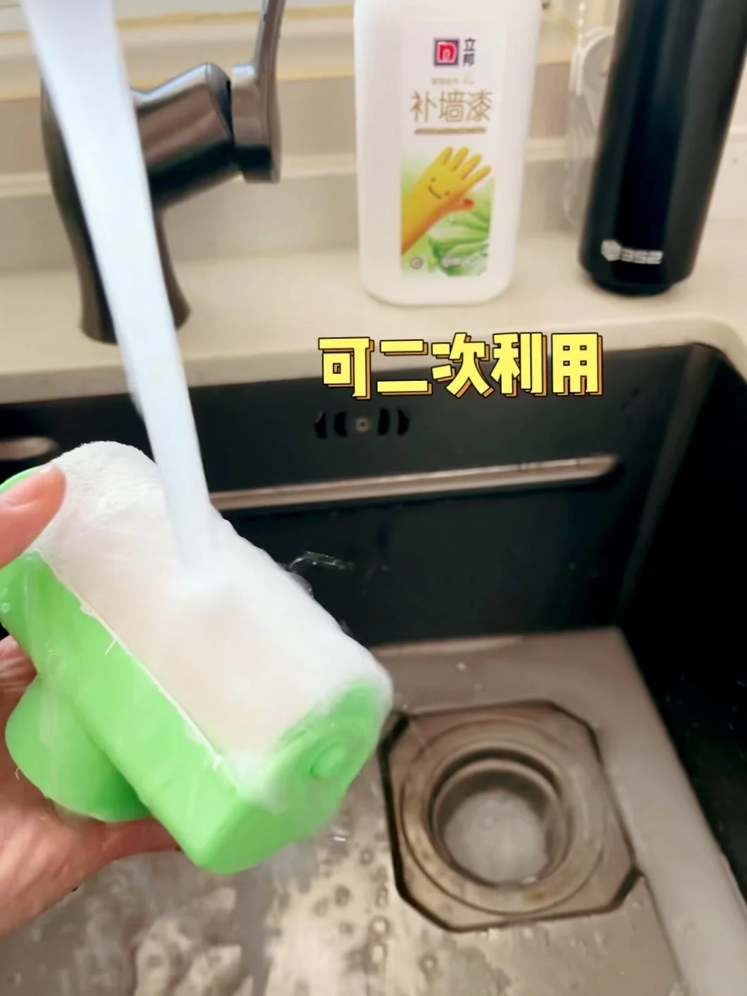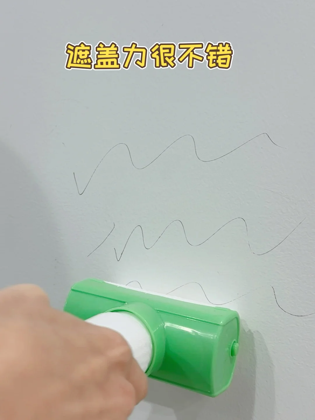 用起来特别顺手,哪怕一手抱娃也能操作。一般是先用把要补的,等干了再用它自带的滚筒滚一遍就行。遮盖力很强,之前那些笔印、手印基本滚一遍就看不见了。它抗污能力真的强,现在娃不小心弄脏墙,湿布一擦就干净,特别让人安心