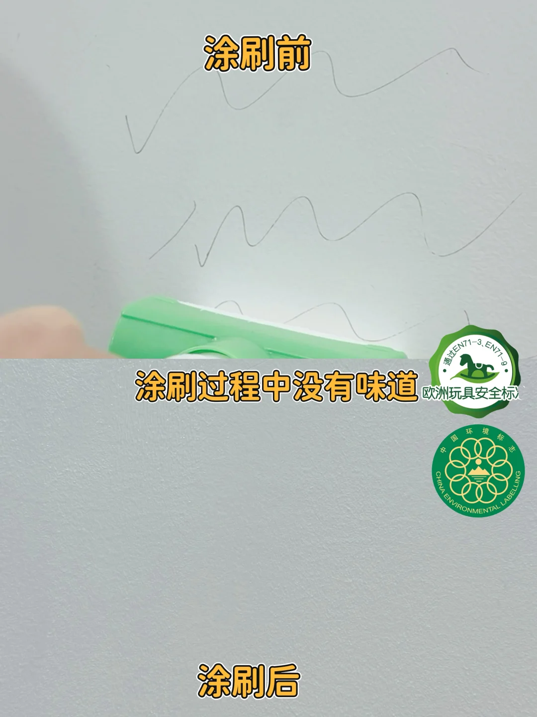 而且它是水性环保的,滚完当天房间就能正常用,不影响孩子睡觉