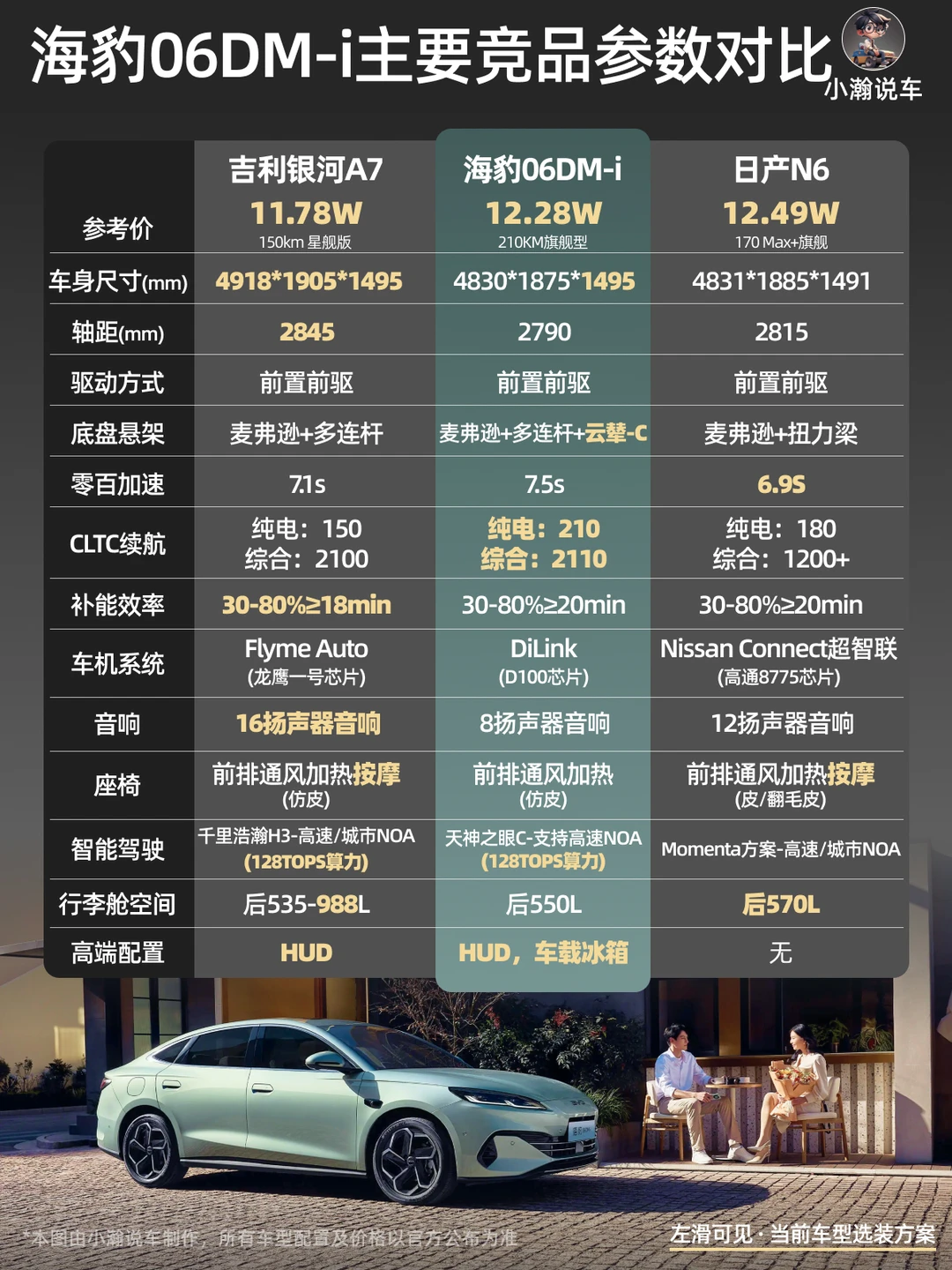 如果预算实在有限,只想要台拥有B级车空间且省油的车,可以选入门的128km豪华型。而两个210km的版本整体性价比显然更高。特别是210km旗舰型,1万的差价能升级得到云辇-C底盘、HUD和车载冰箱,显然是全系主推款!(秦L DM的配置推荐亦可参考海豹06DM)