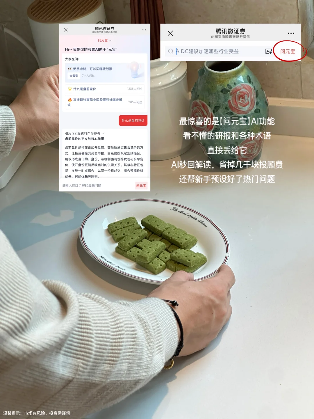 ▫️AI即时答疑:遇到不懂的术语、财报或行业动态,直接点 【问元宝】,它能基于金融数据库快速给出清晰解读,相当于随身带了个专业的顾问,也能看到大家都在问什么。