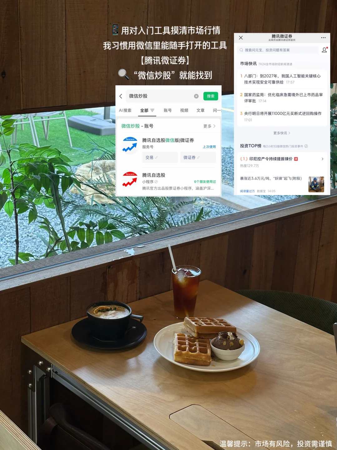 借助合适工具紧跟行情,才能少走弯路,我习惯用vx里能随手打开的工具【腾讯微证券】,🔍“微信炒股”就能找到,新手可以这么用: