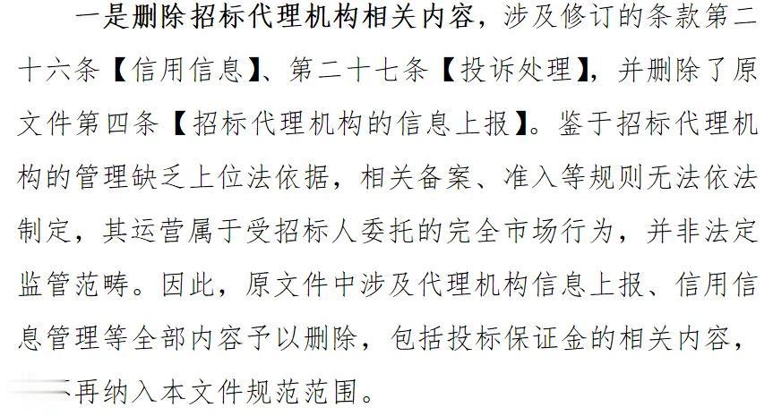 新规取消了招标代理机构库及投标保证金标准指引,简化了流程,但也要求业委会自主判断是否聘请代理机构、合理设定保证金。