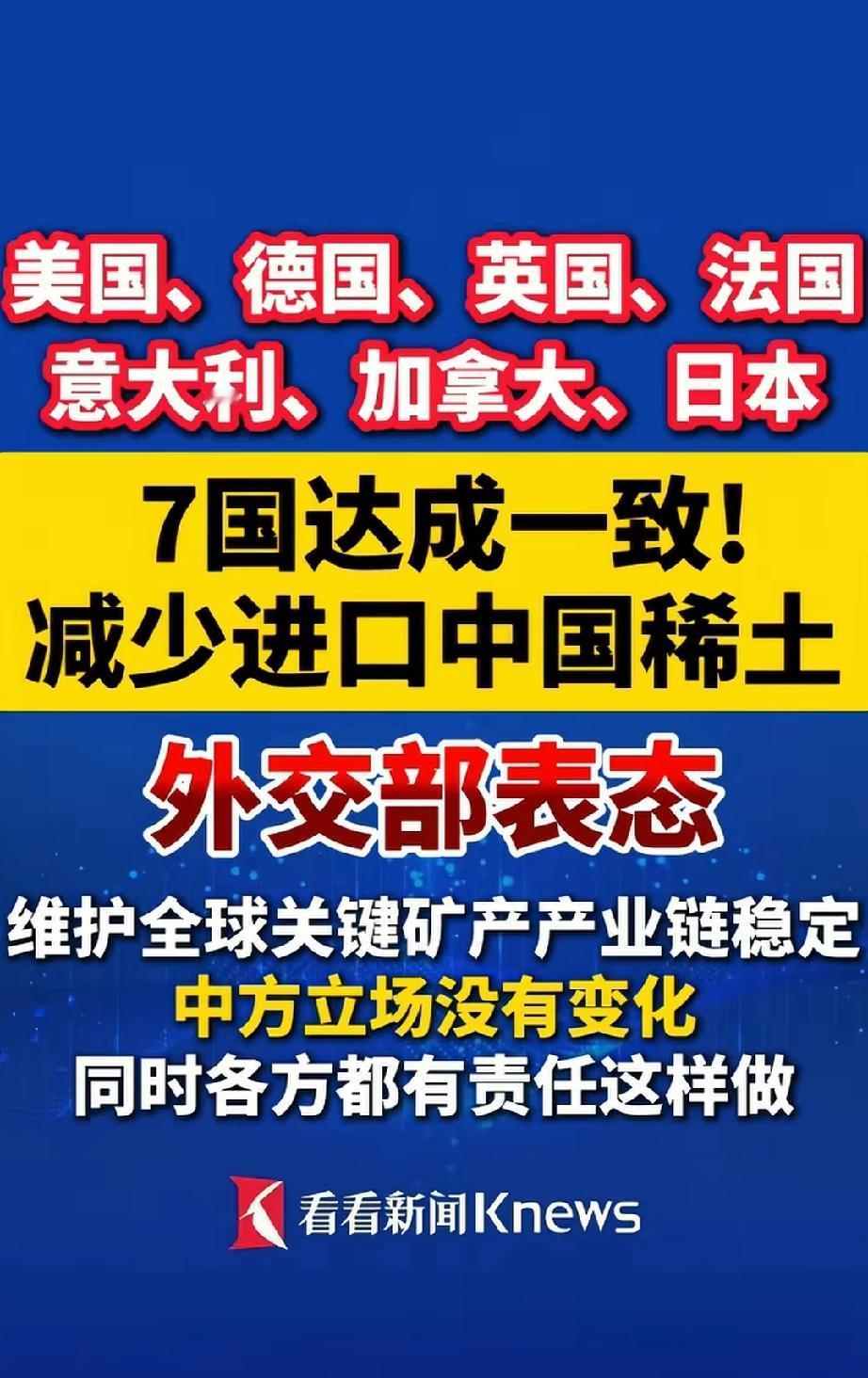 重磅消息,美国,德国,英国,法国,意大利,加拿大,日本七国达成一致,减少进口中国稀土。