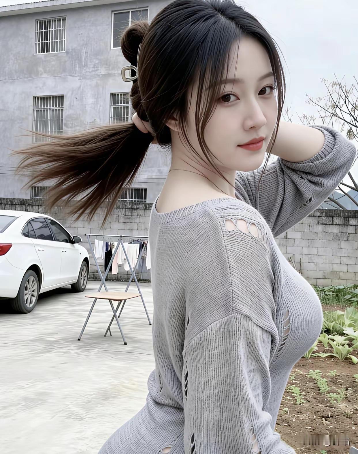 温柔冬日穿搭,灰色毛衣搭配清新自然背景