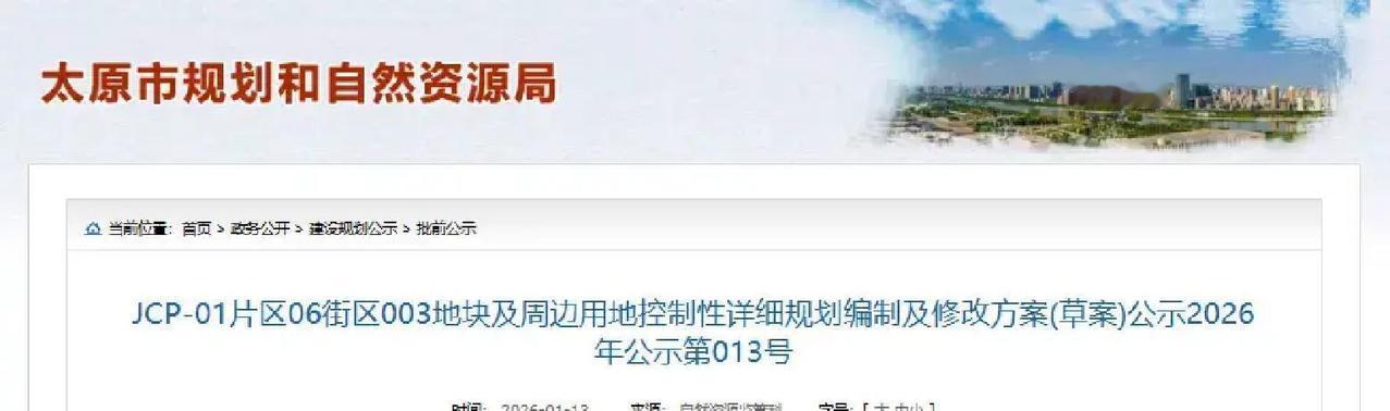 1月13日,太原尖草坪区一块近12公顷的地块规划大变样!原本主要是物流仓储用地,