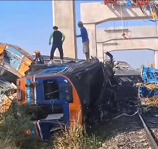 现场惨烈!起重机掉落,砸中行经旅客列车,有车厢被砸碎,死伤惨重。泰国高铁事故死亡人数还在上升,从10人上升至22人,后调整为28人,现在已经有32人不幸遇难了。今天(1月14日)上午9点45分,泰国呵叻府一在建高铁项目发生重大事故,一台起重机施工过程中发生坠落,正好砸中从下方经过的一列火车,导致车厢起火并脱轨。目前这起事故已造成32人死亡,67人受伤。热点 热点 泰国一在建高铁项目发生惨烈事故 泰国高铁事故已致32人死亡