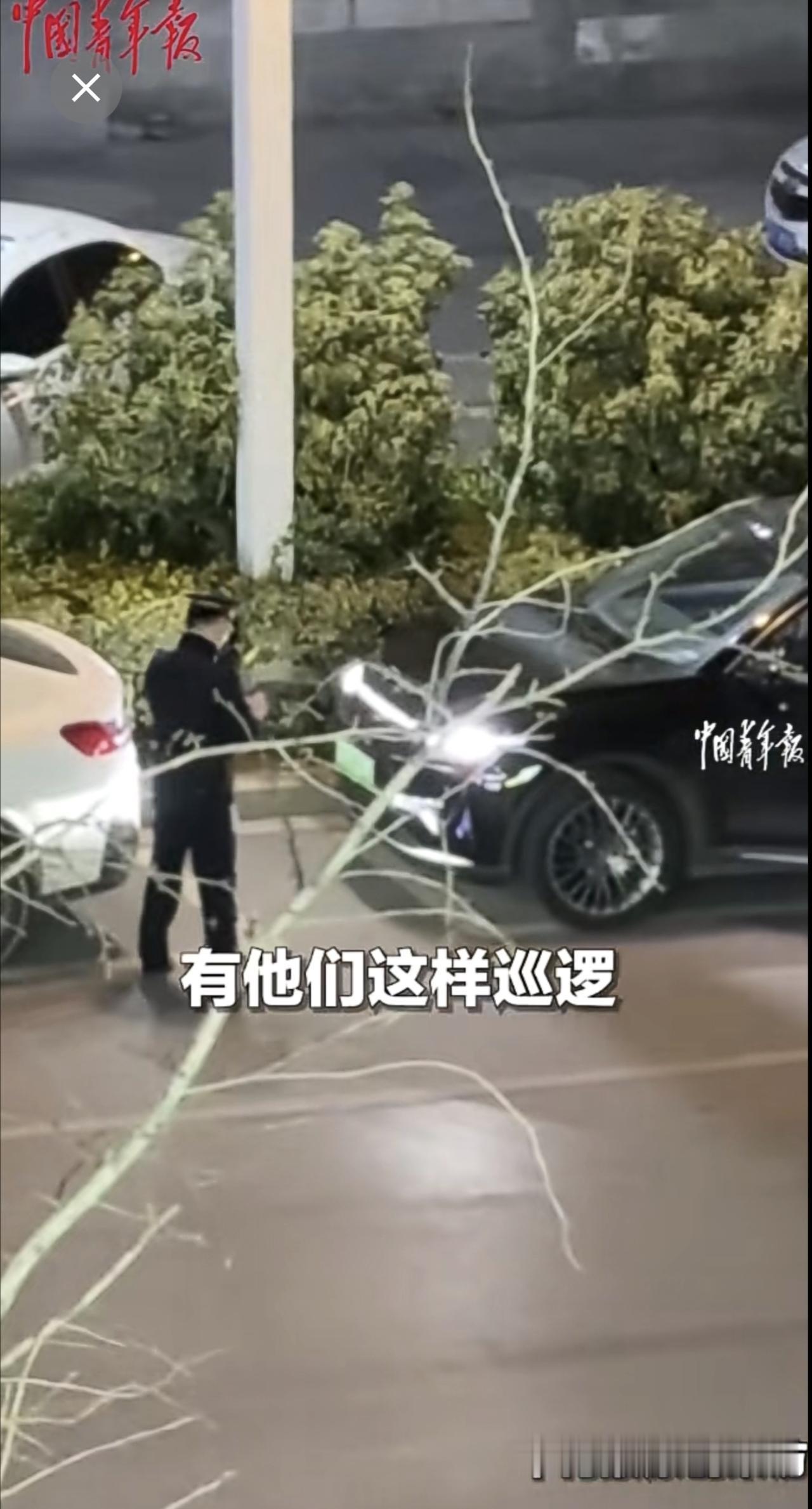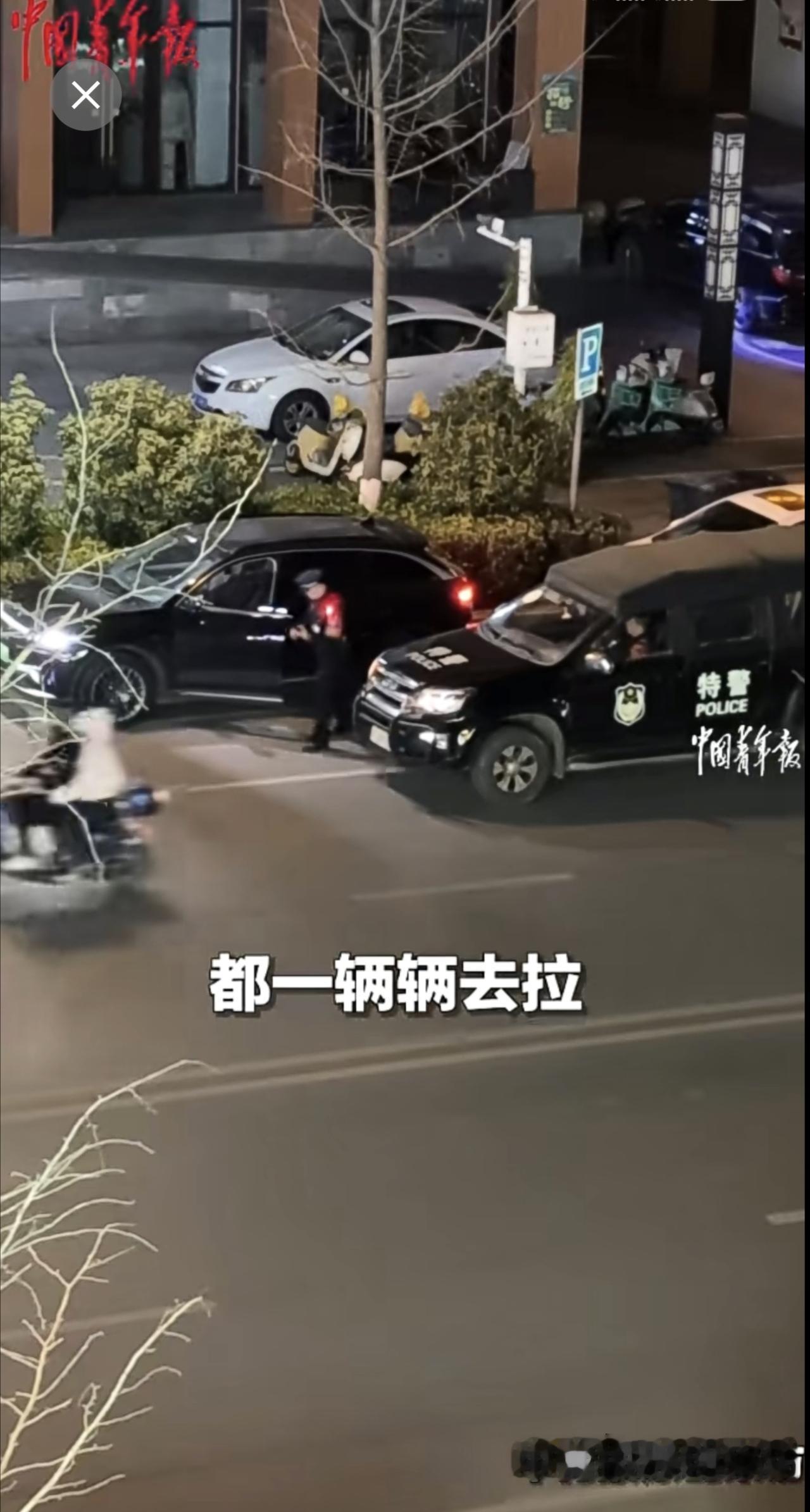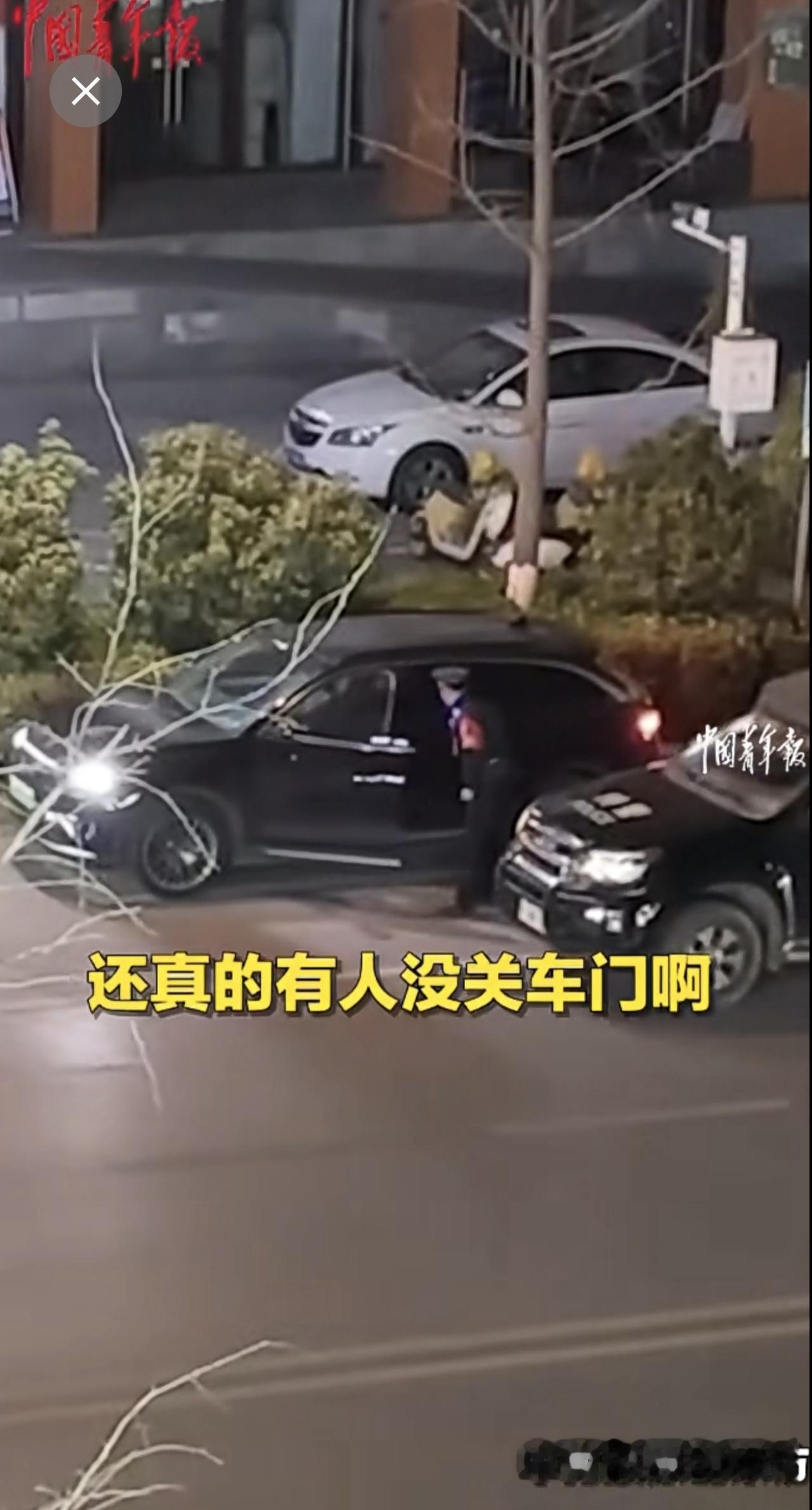 近日,江西万载,女子看见楼下特警巡逻,挨个拉停靠在路边车辆的车门,排查车辆落锁情况,安全感爆棚!(来源:中国青年报)江西