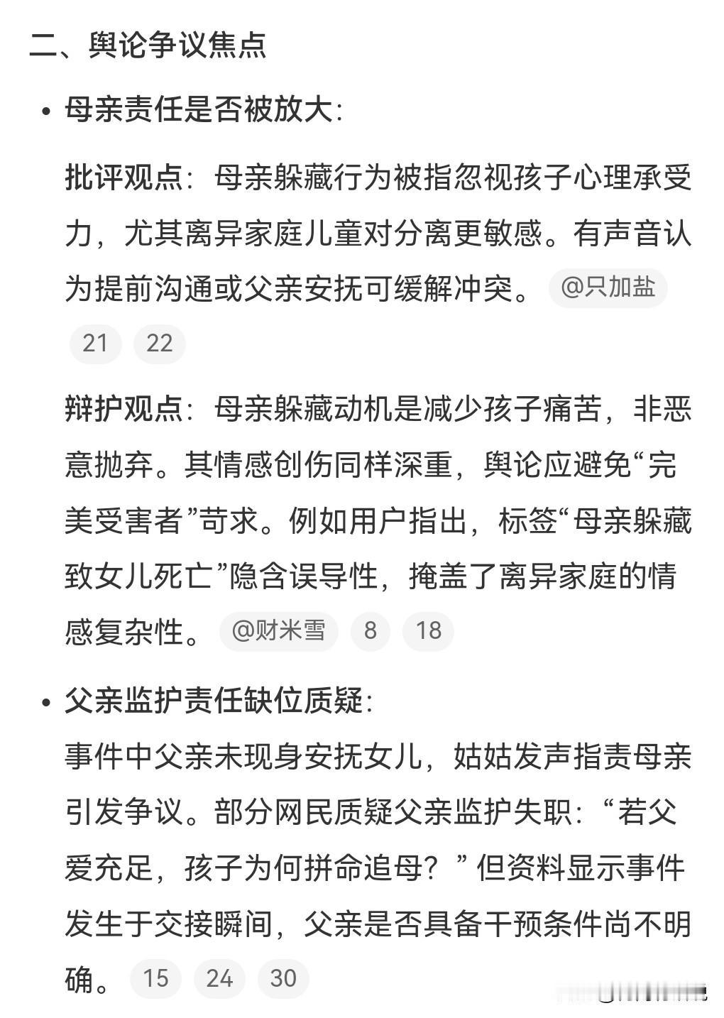 这真是太悲剧了。小女孩太可怜了。 1月14日热搜,母亲躲藏致女儿心源性休克身亡。 这是发生在湖南的一起悲剧,父母离异,母亲带孩子玩耍后,把女孩送回家,然后她就躲藏起来,怕女儿纠缠。 女孩撕心裂肺的哭喊着找妈妈,结果由于太激动引发心源性休克死亡。 这真的是太悲剧了,可怜的孩子。