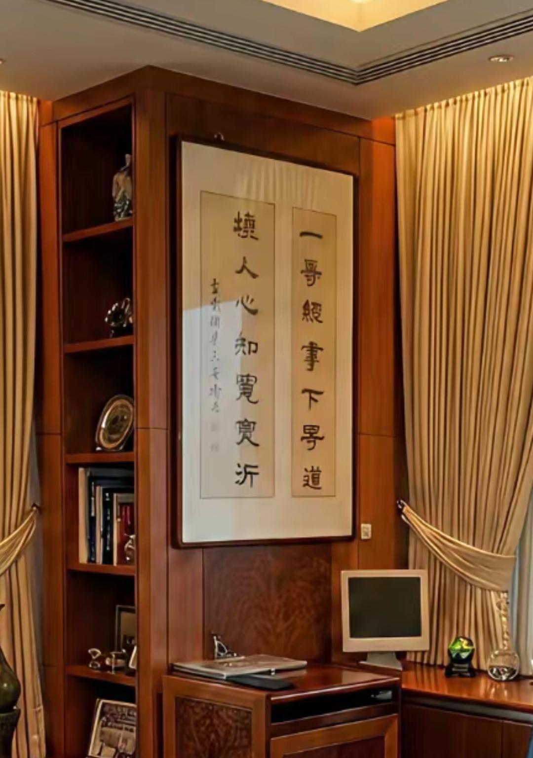 大家看看李嘉诚办公室墙上挂的这幅字,能认出来是写的什么吗? 我琢磨很久都没有看出来这幅字到底是什么意思,有些字还是靠猜,但也不一定猜对,而且还没有认全所有的字。 看看网友粉丝里面有没有厉害的人,说说李嘉诚这幅字都是写的什么,有什么出处解读吗?