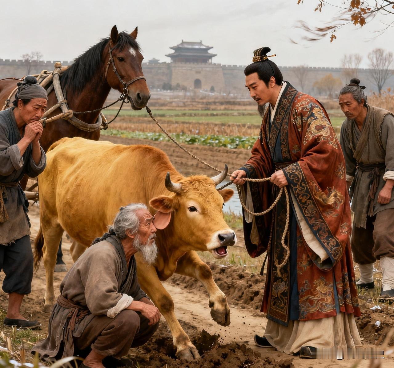 公元前655年深秋,秦穆公碰到一个听得懂牛语的老奴隶…… 那天的风裹着渭水的寒气,吹得秦穆公的锦袍都打了褶。他刚结束对西戎的巡视,带着随从行至雍城郊外的田埂,就见一群农夫正围着一头黄牛发愁。那牛浑身是汗,前腿刨着地,哞声悲切得像是在哭,任凭主人怎么鞭打都不肯挪动半步。人群里一个穿粗麻短褐的老者蹲在牛身边,耳朵贴得极近,时不时点头叹息,模样透着股奇怪的认真。 秦穆公本就爱民,见此情景便勒住马缰绳:“老人家,这牛为何不肯前行?”老者起身行礼,脸上沟壑纵横却眼神清亮:“回大王,这牛在跟我说心里话呢。”随从们听了都笑,觉得这老奴隶胡言乱语,秦穆公却来了兴致,摆手让众人安静:“它说什么了?你细细讲来。” 老者重新蹲下,又听了片刻才开口:“这牛说,它本是南山神牛的后代,这辈子勤勤恳恳耕地拉车,从没偷懒耍滑。可刚才主人说,前头就是祭祀台,要把它杀了祭祀上苍,求来年风调雨顺。它不是怕疼,是觉得不值——地里的麦子刚种下去,正是需要它拉犁松土的时候,就这么杀了,开春误了农时,百姓们又要挨饿。” 这话一出,周围的农夫都愣住了。赶牛的汉子涨红了脸:“大王,我……我也是听里正说,今年秋旱,得用一头壮牛祭祀才能求来雨水,实在不是故意要杀它。”秦穆公望着那头仍在低声呜咽的黄牛,又看看老者眼中的真诚,心里犯了嘀咕。他素来不信鬼神之说,可老者的话条理清晰,不像是编造,再看那牛的神情,确实满是委屈。 “你叫什么名字?怎么能听懂牛语?”秦穆公追问。老者答道:“小人叫百里奚,年轻时读过些书,后来家道中落,沦为奴隶。至于听懂牛语,说来也怪,三年前一场大病后,竟能听懂牲畜说话了。”秦穆公心中一动,百里奚这个名字,他似乎听人提起过,说是个有大才的人,只是一直流落四方。 他当即决定暂缓祭祀:“这牛既然有心愿,又关乎农时,就暂且留下。百里奚,你跟我回王宫,我倒要听听,这世上的牲畜还能说出什么道理。”随从们都不解,一个奴隶而已,怎配让大王如此重视?秦穆公却不理会,让人给百里奚松了绑,邀他同乘一车。 回到王宫,秦穆公摆上宴席,让百里奚细说牲畜们的言语。百里奚也不怯场,娓娓道来:“其实牲畜和人一样,也有喜怒哀乐。春耕时,耕牛会抱怨主人鞭打太狠;秋收时,战马会念叨粮草不足;就连圈里的羊,也会为同伴被宰杀而悲鸣。它们说的最多的,是希望人能善待它们,因为它们的性命,本就是为了帮人更好地生活。” 秦穆公听得入了迷,又问:“那依你之见,祭祀之事该如何处理?”百里奚答道:“大王,百姓求雨心切可以理解,但祭祀的本意是祈福,而非滥杀。如今秋旱,根源是水利不修,而非神明降罪。不如把准备祭祀的钱财粮食拿出来,组织百姓开凿沟渠,引渭水灌溉田地,再让耕牛们全力劳作,来年必定丰收。至于神明,心诚则灵,善待万物,便是最好的祭祀。” 秦穆公连连点头,觉得百里奚的话字字在理。他当即下令,停止以牛祭祀,任命百里奚为大夫,主持水利修建。百姓们听说后,都欢呼雀跃,纷纷主动参与修渠。百里奚果然不负所望,他带着百姓勘察地形,日夜操劳,只用了三个月就修成了一条贯通城郊的水渠,引来了渭水,缓解了旱情。 开春后,那头发声的黄牛果然带着其他耕牛,在田里勤恳劳作。百里奚时常去田埂上,听牛群诉说耕作的情况,及时告诉农夫们调整耕种方式。这一年,雍城粮食大丰收,百姓们再也不用为温饱发愁。而百里奚也凭借自己的才能,一步步成为秦国的相国,辅佐秦穆公整顿内政、发展生产,使秦国国力日渐强盛。 有人问过百里奚,是否真的能听懂牛语。他总是笑着答道:“其实我听懂的不是牛语,是民心。牲畜的诉求,说到底就是百姓的诉求——他们想要风调雨顺,想要安居乐业,想要被善待。所谓听懂牛语,不过是静下心来,倾听万物的声音,理解生灵的疾苦罢了。” 秦穆公后来常对人说:“当初若不是碰到百里奚,我恐怕还在迷信祭祀,耽误了百姓。这世上最珍贵的,不是能听懂兽语的奇能,而是能体察民心的智慧。善待万物,顺应民心,方能国泰民安。” 从此,秦国不仅重视农业生产和水利建设,更形成了善待牲畜、体恤百姓的风气。而百里奚凭借自己的智慧和才能,从一个奴隶逆袭成为一代名相,留下了千古佳话。那个深秋的偶遇,不仅改变了一头牛的命运,更改变了秦国的命运,也让“善待万物,民心为上”的道理,流传了千年。 出处:民间故事改编