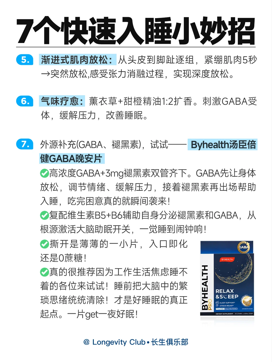 7.外源补充(GABA、褪黑素),试试☞☞☞Byhealth汤臣倍健GABA晚安片