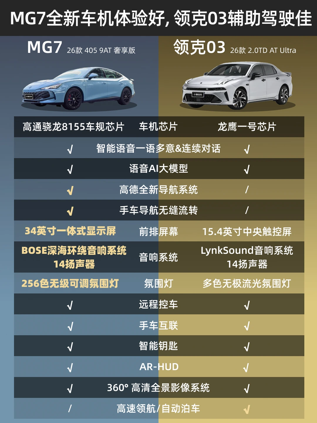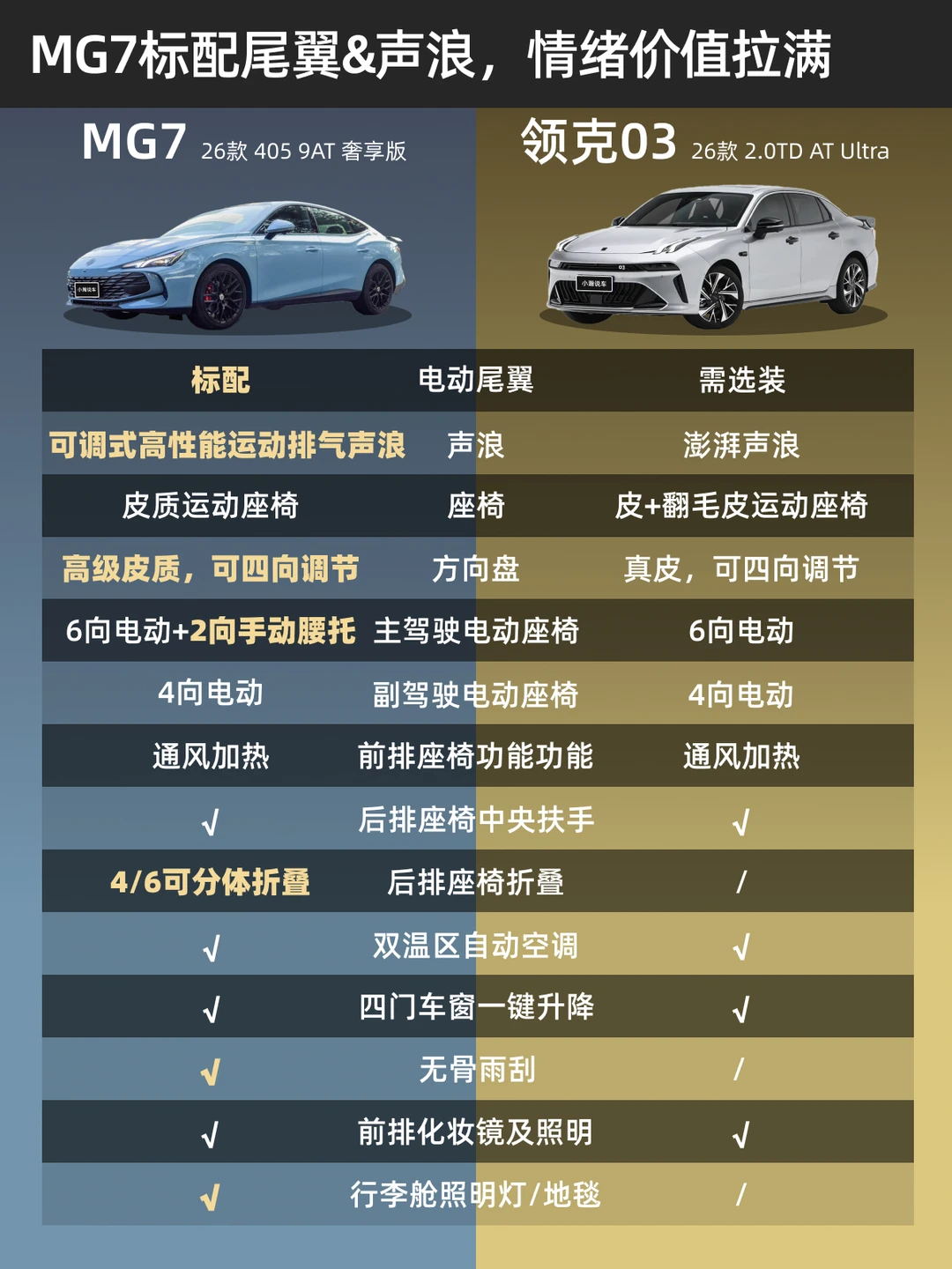 要我建议,如果你享受改装乐趣,追求极致驾驶感受,领克03依然值得。但如果你想要一台“省心省力配置又足”的运动轿跑,这次的新款MG7,确实性价比很高。