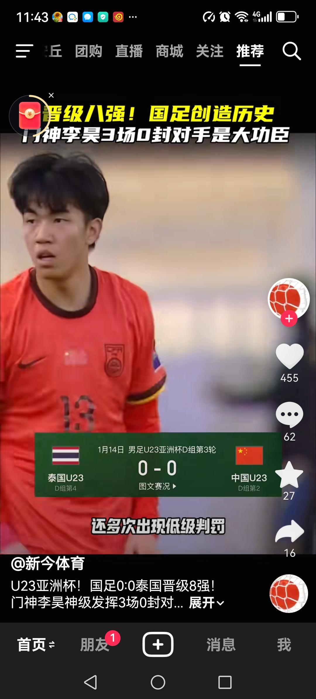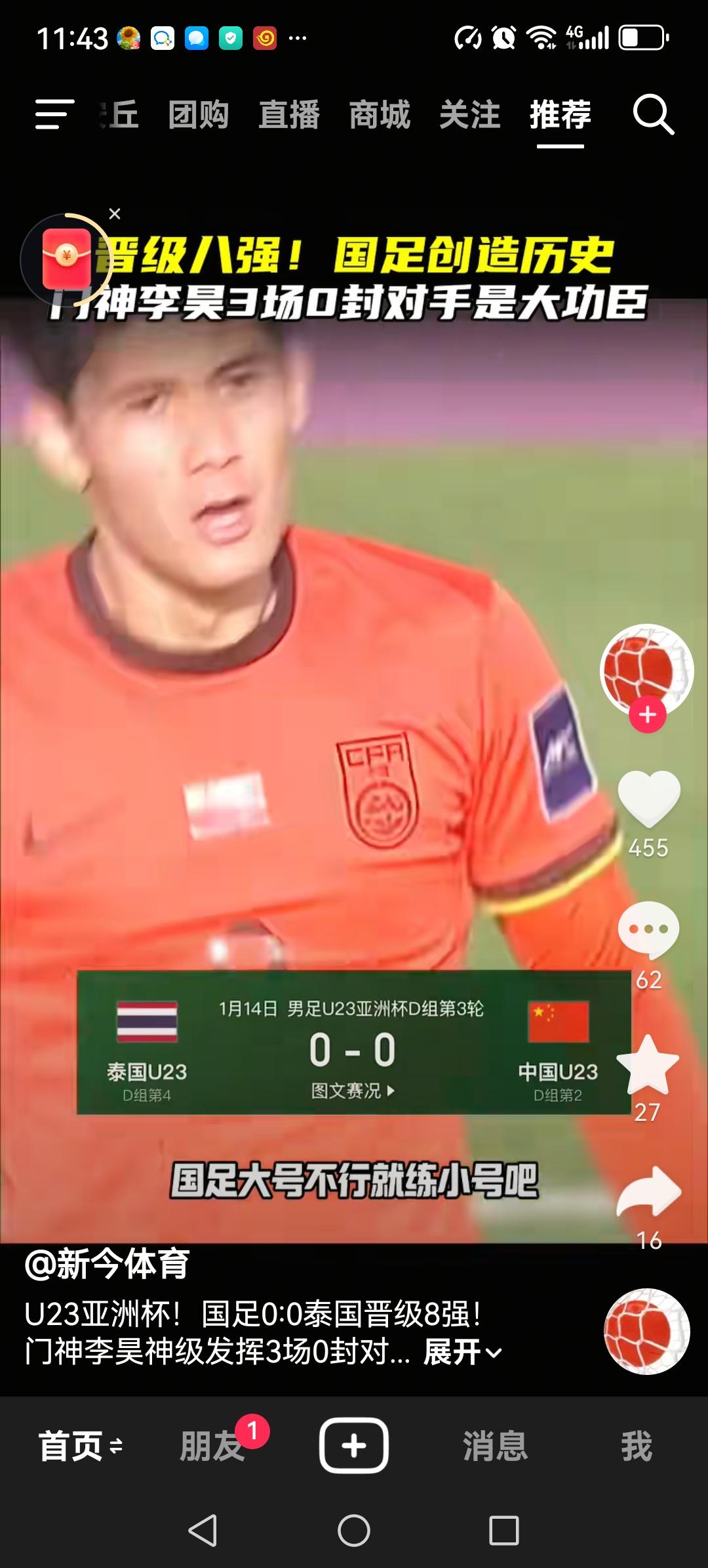 u23国足0:0逼平泰国,以小组第2昂首进入淘汰赛,创造历史。八强淘汰赛的对手是乌兹别克斯坦。国足要想继续创造历史,难度相当之大,为什么? 进攻太差,三场小组赛我们只打进了一个球,这个进球还是后卫打进的,我们的前锋进攻疲软。在进入八强的队伍当中,我们的进球数是最少的。 唯一值得欣慰的是,我们的防守还算可以,三场小组赛没有丢球,这个以往是很少见的,当然这归功于门将李昊。 17号打乌兹别克斯坦,祝我们好运吧。