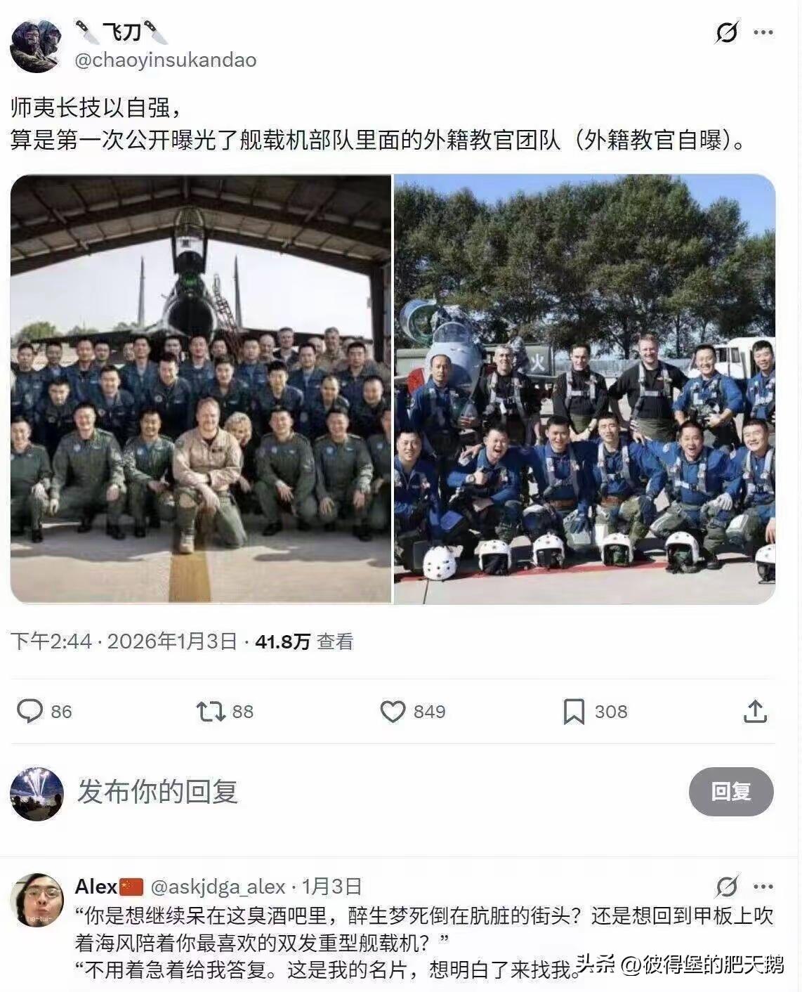 谁能想到,谁能想到啊,辽宁舰的舰载机竟然有一个外籍教官团队,这乌泱乌泱的一大片。