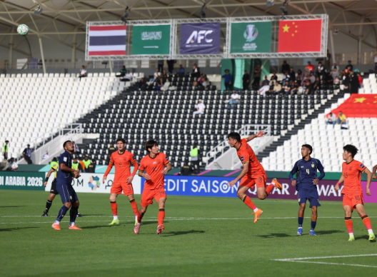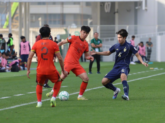 14日,在沙特阿拉伯利雅得进行的2026年亚足联U23男足亚洲杯D组最后一轮比赛中,中国队战平泰国队,晋级淘汰赛。