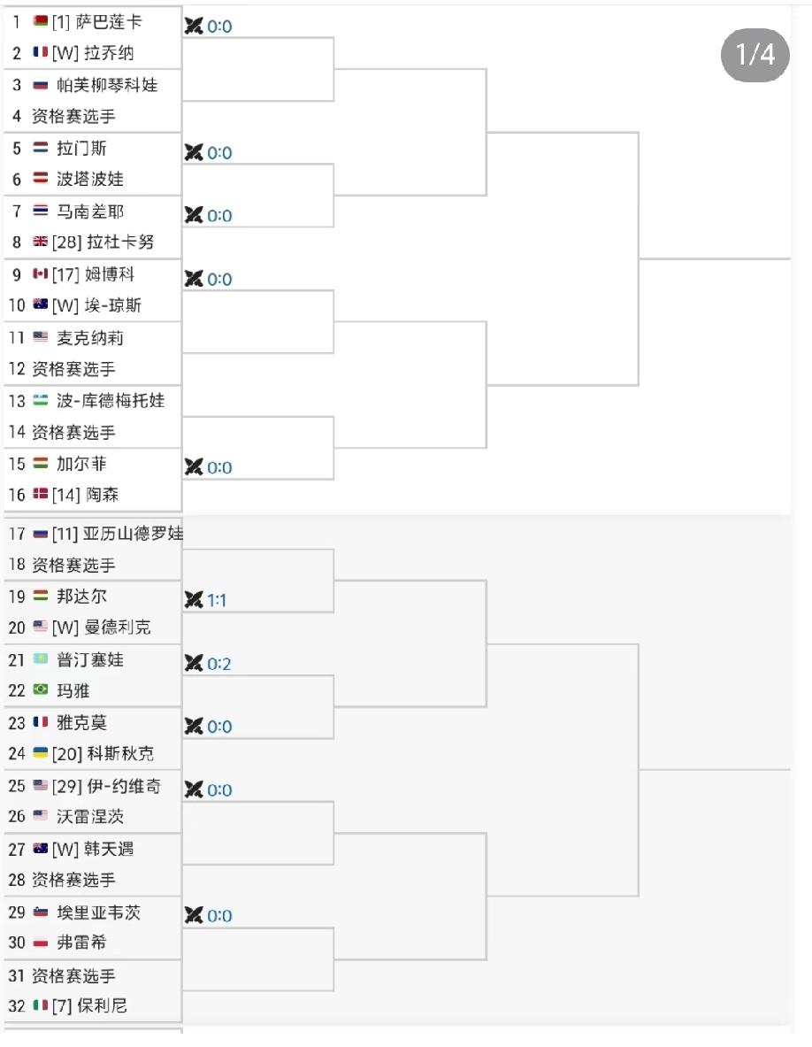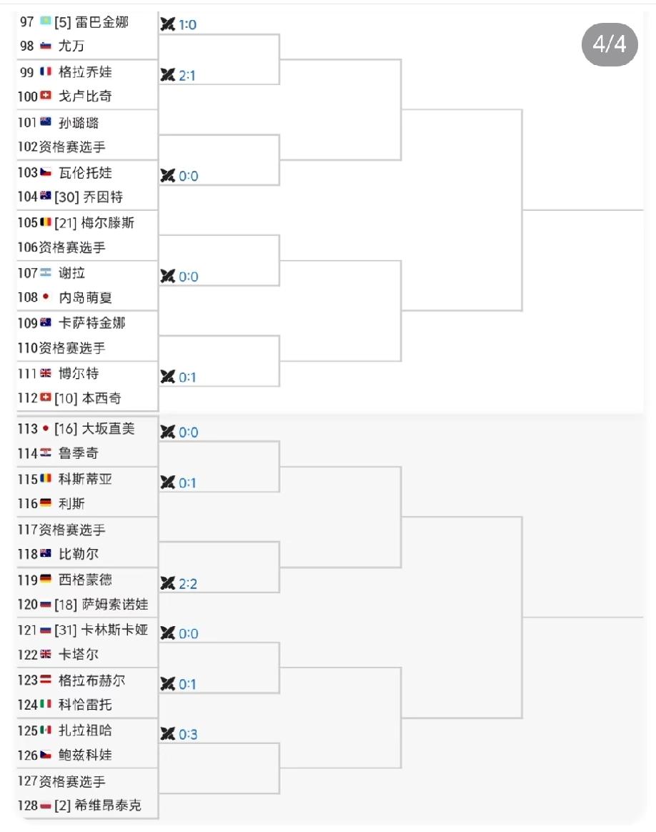 澳网女单签表正式出炉,王欣瑜和张帅同分在阿尼西莫娃所在的4/4区,王欣瑜第二轮很有可能碰上奥斯塔彭科,张帅第二轮很可能碰上若斯科娃,如果两位球员都能过了这二关,就会在第三轮正面相遇。大家觉得他俩有可能相遇吗? 具体大种子对位如下: 萨巴伦卡vs保利尼 丝袜泰克vs莱巴金娜 高芙vs小安德烈耶娃 阿尼西莫娃vs佩古拉 萨巴伦卡和科斯秋克不会又碰上吧?
