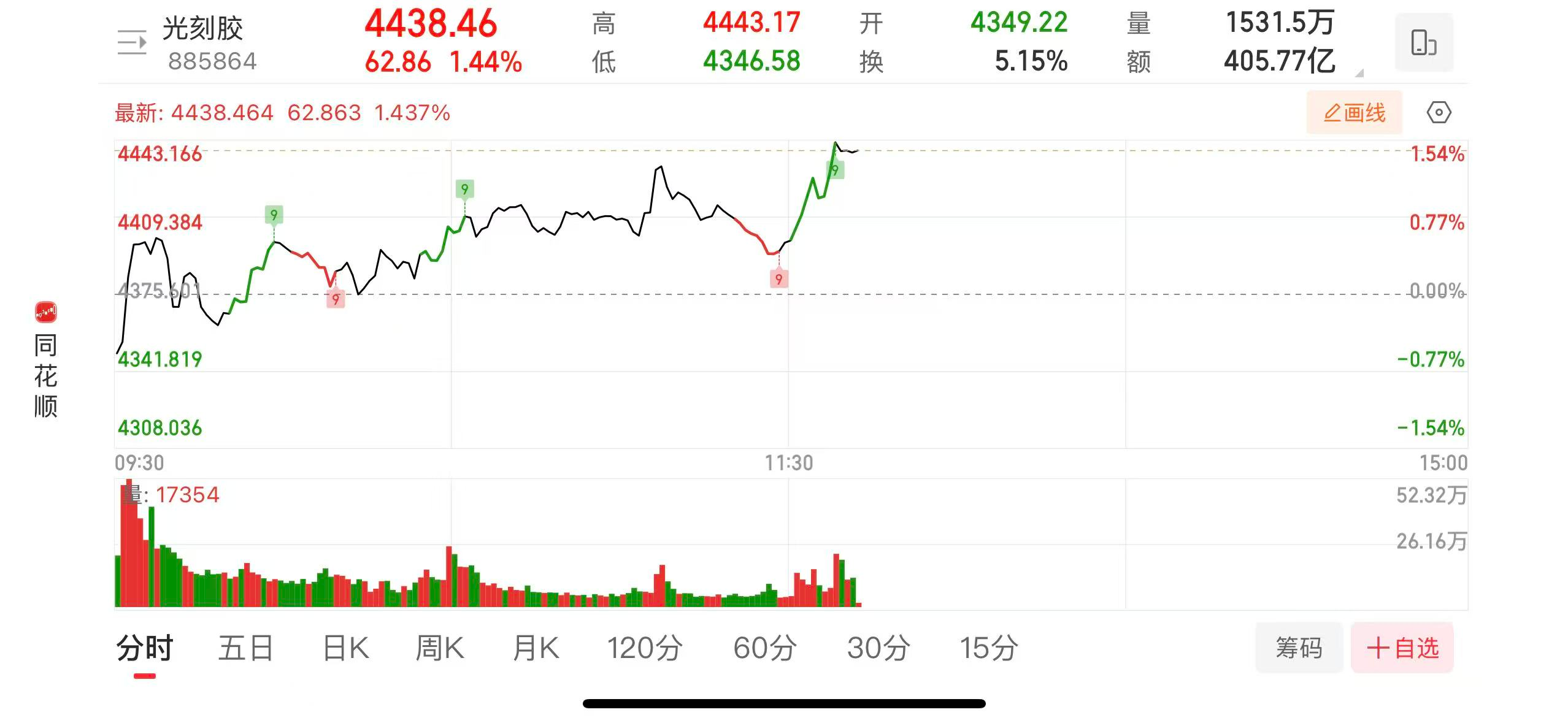 光刻胶概念震荡上行七彩化学20CM二连板