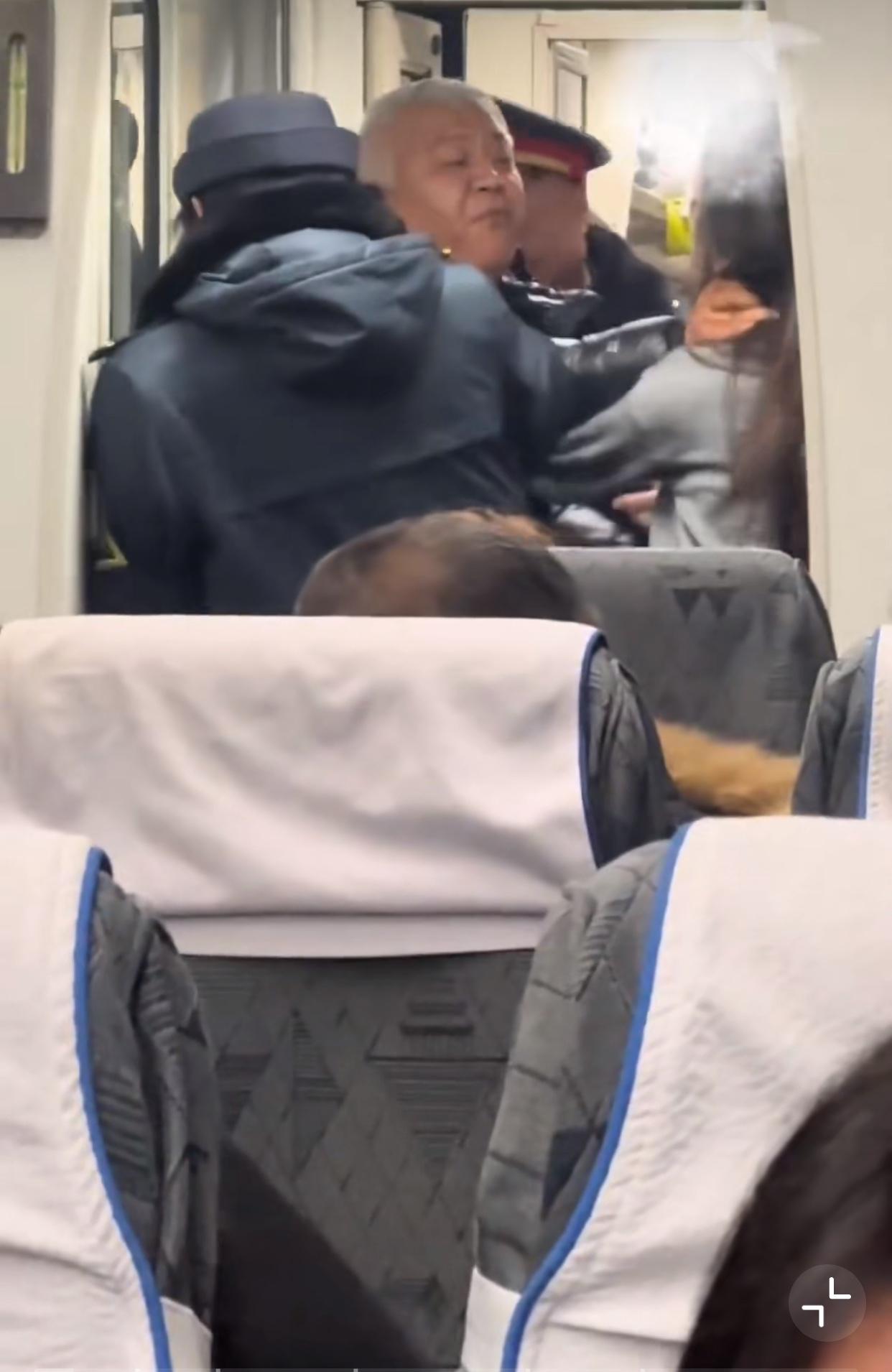 近日山东济南,K412列车上,由于过道上放了很多行李箱,影响了通行,一位满头白发的大爷就针对其中一个小姑娘的行李箱开始骂(因为黑色的箱子居多,姑娘的是粉红色,在一堆箱子里很显眼)! 随后小姑娘起身要去找乘务员,大爷随后跟上并向小姑娘动手,掐着小姑娘的脖子,朝小姑娘脸上吐口水,还抽着烟吐烟…. 之后工作人员及时赶到将其分开,小姑娘说大爷打他,但大爷说我没打我只吐….. 这大爷是真恶心,只敢欺负人家一个小女生…