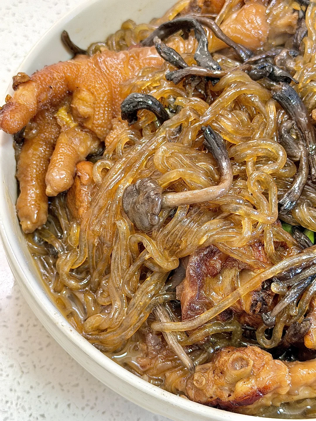 今日份美食分享: 小鸡蘑菇炖粉条 . 食材:东北小笨鸡 红薯粉条 葱姜干辣椒 做法如图上⬆️ . 东北名菜小鸡炖蘑菇,在加点粉条太绝了~ 里面的粉条贼入味,比鸡肉都好吃😋