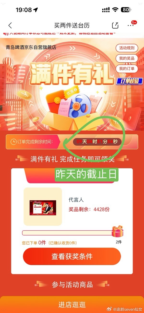 好消息,啤酒买赠代言人日历活动延期了!原本只有9天了,品牌方加时了,现还有18天时间,给大家的时间更多了,代言人粉丝排面拉满!