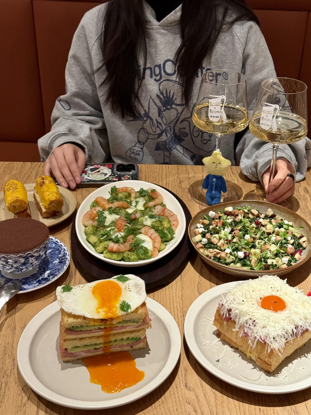 •̀.̫•́✧一上新品我就来品细糠 11:00 落座翻菜单 11:20 我心爱的食物们端上桌 11:30 优雅捧杯白葡萄酒 11:50 品尝美味三明治 12:30 分享最后一口甜品 少吃和不吃之间选择了不少吃⸝⸝⸝ 𓌉◯𓇋