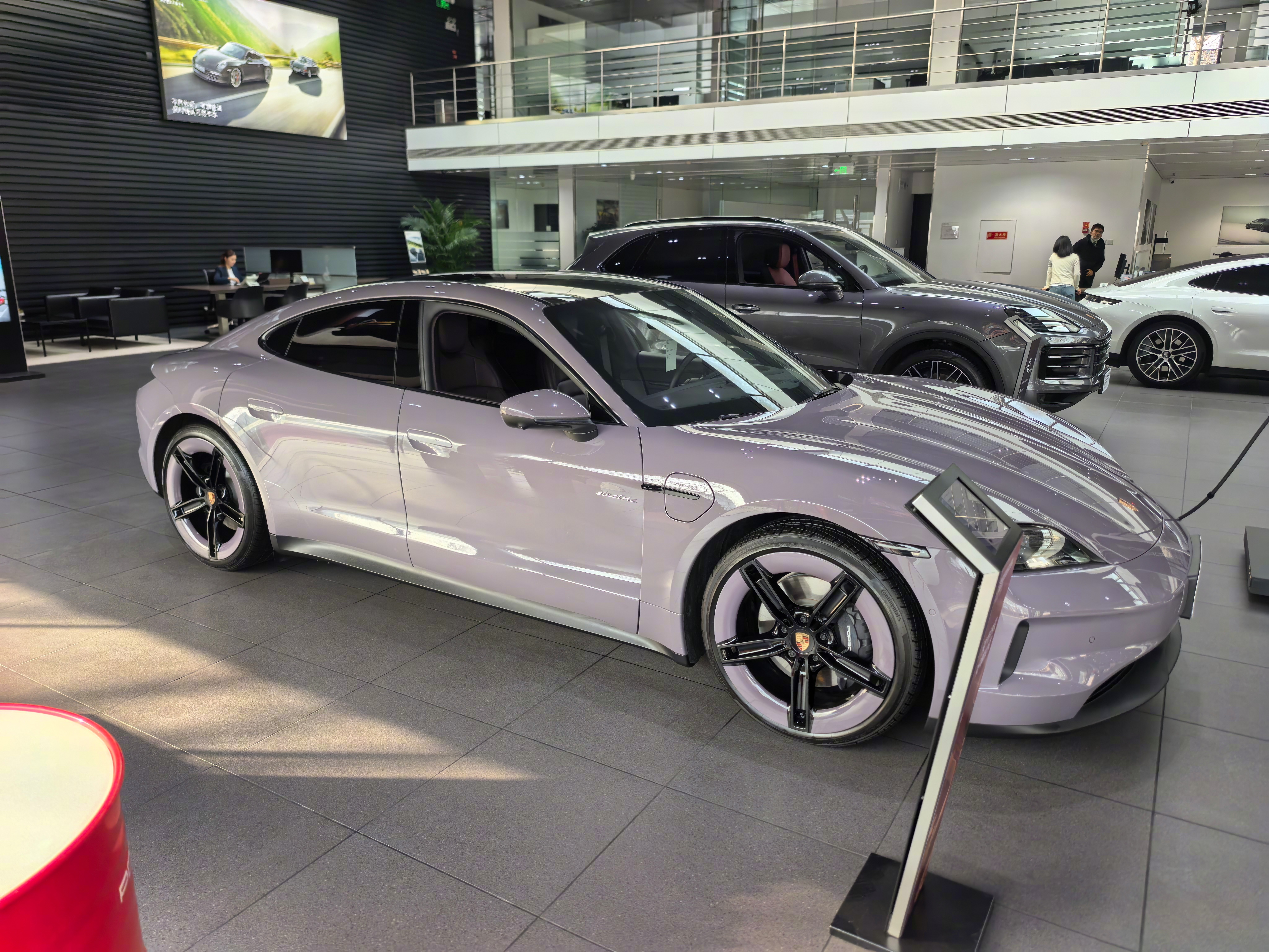 这个Taycan的紫色比我家那个冰莓粉好看。 店里说:空调比第一代明显进化了