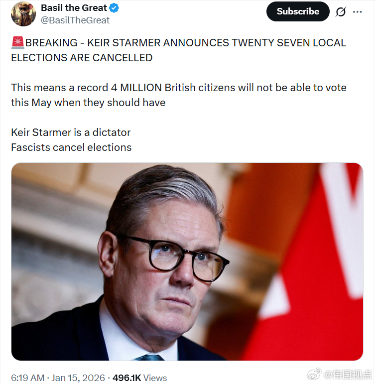 基尔·斯塔默宣布取消27场地方选举这意味着创纪录的400万英国公民在原本应该参加的今年五月选举中无法投票。大英完了