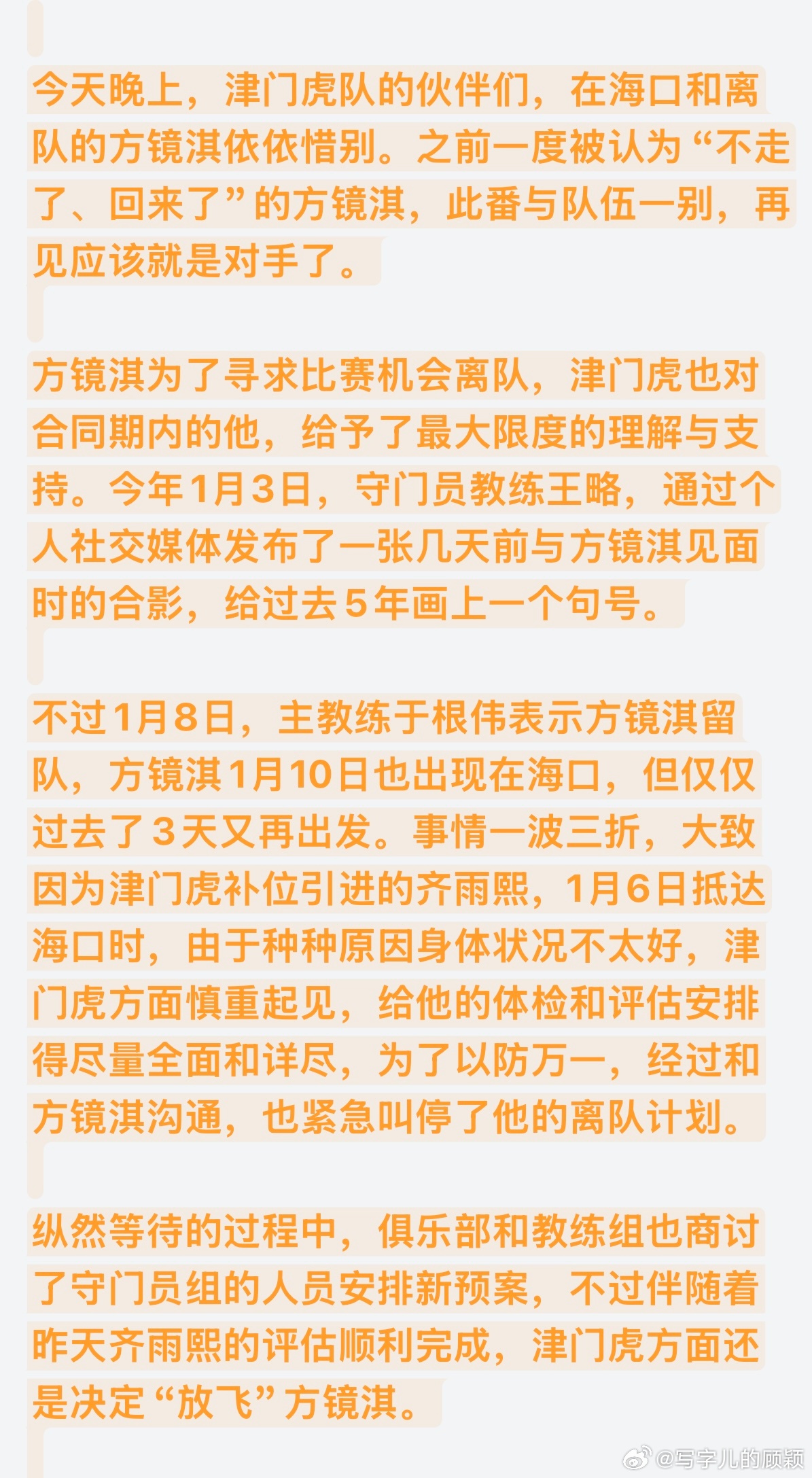 归队三天又说“再见”,一波三折,方镜淇今晚背着吉他作别津门虎。突如其来的感动,小方专门签了一件衣服,让伙伴回头送我。一路平安、年年平安,是对他最朴素、也最真诚的祝福。天津津门虎中超
