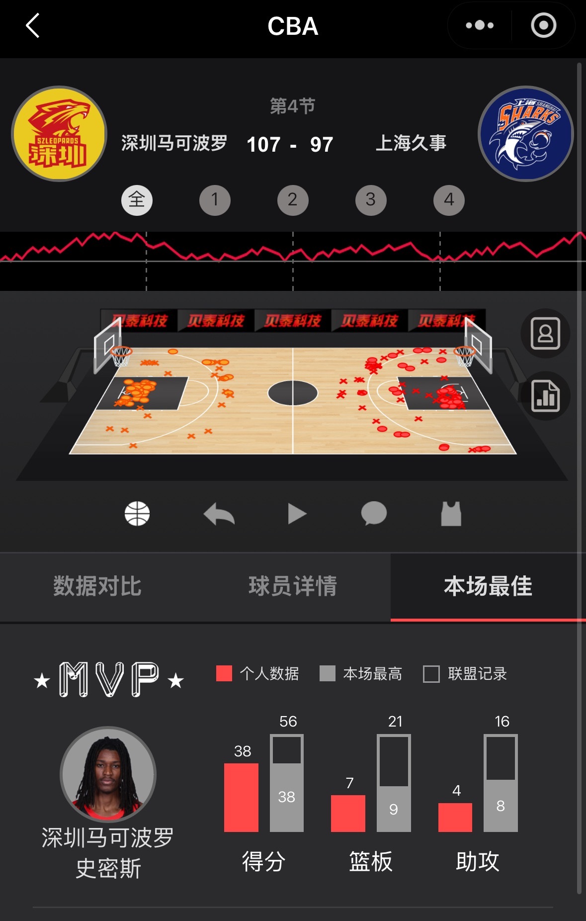 上海队在客场不敌深圳,九连胜被终结了深圳队的小外援史密斯这场又爆了上海久事大鲨鱼