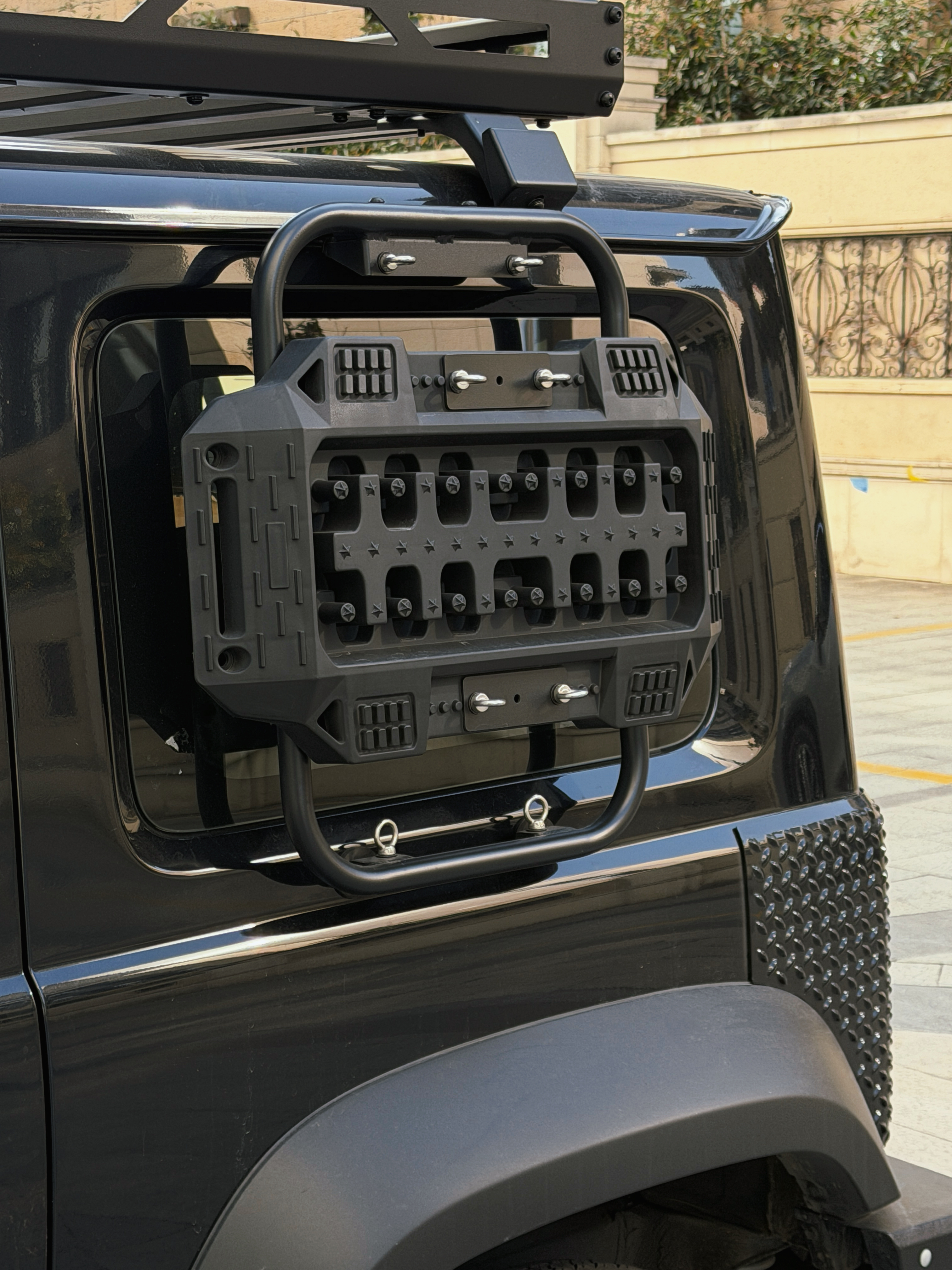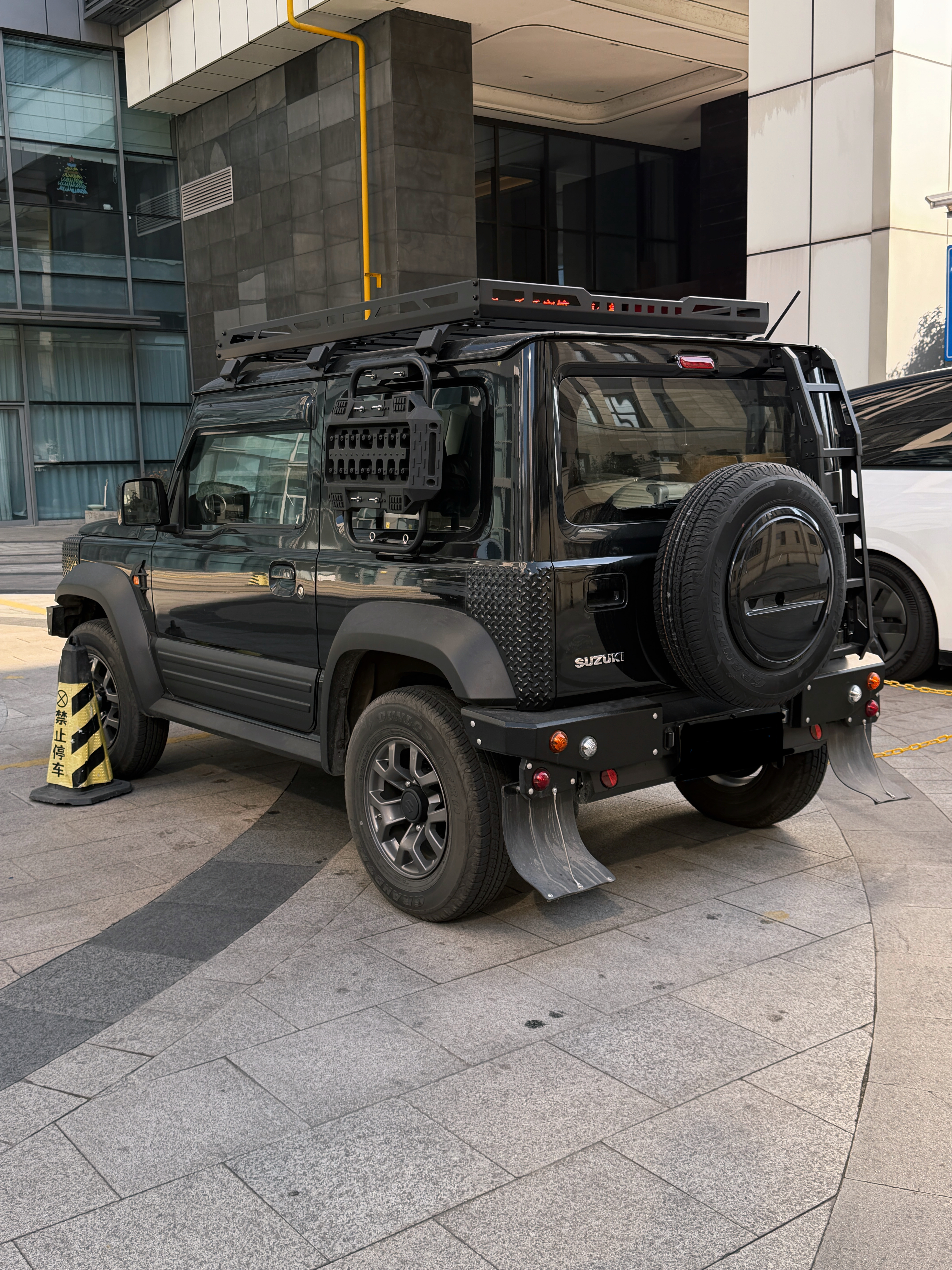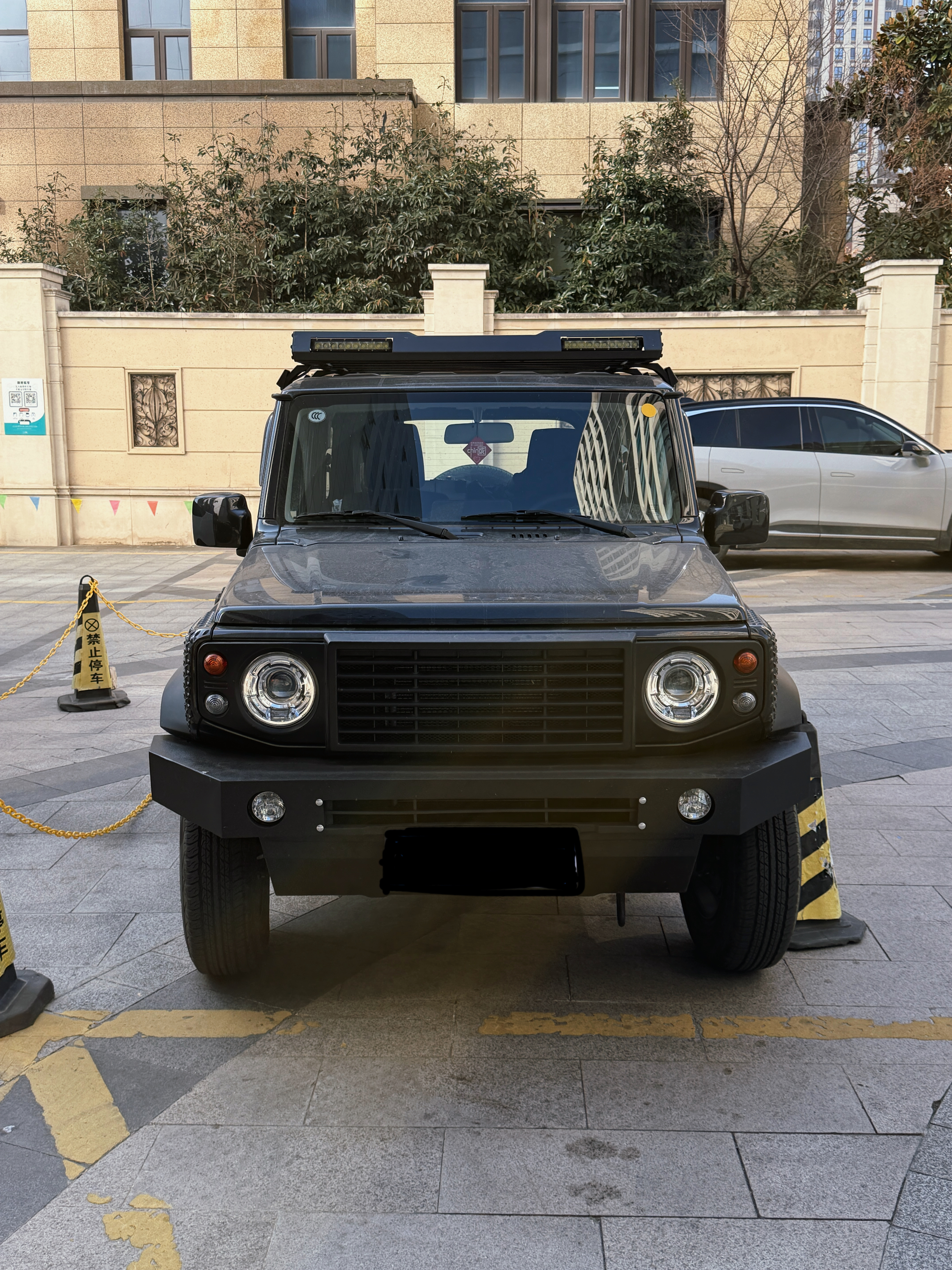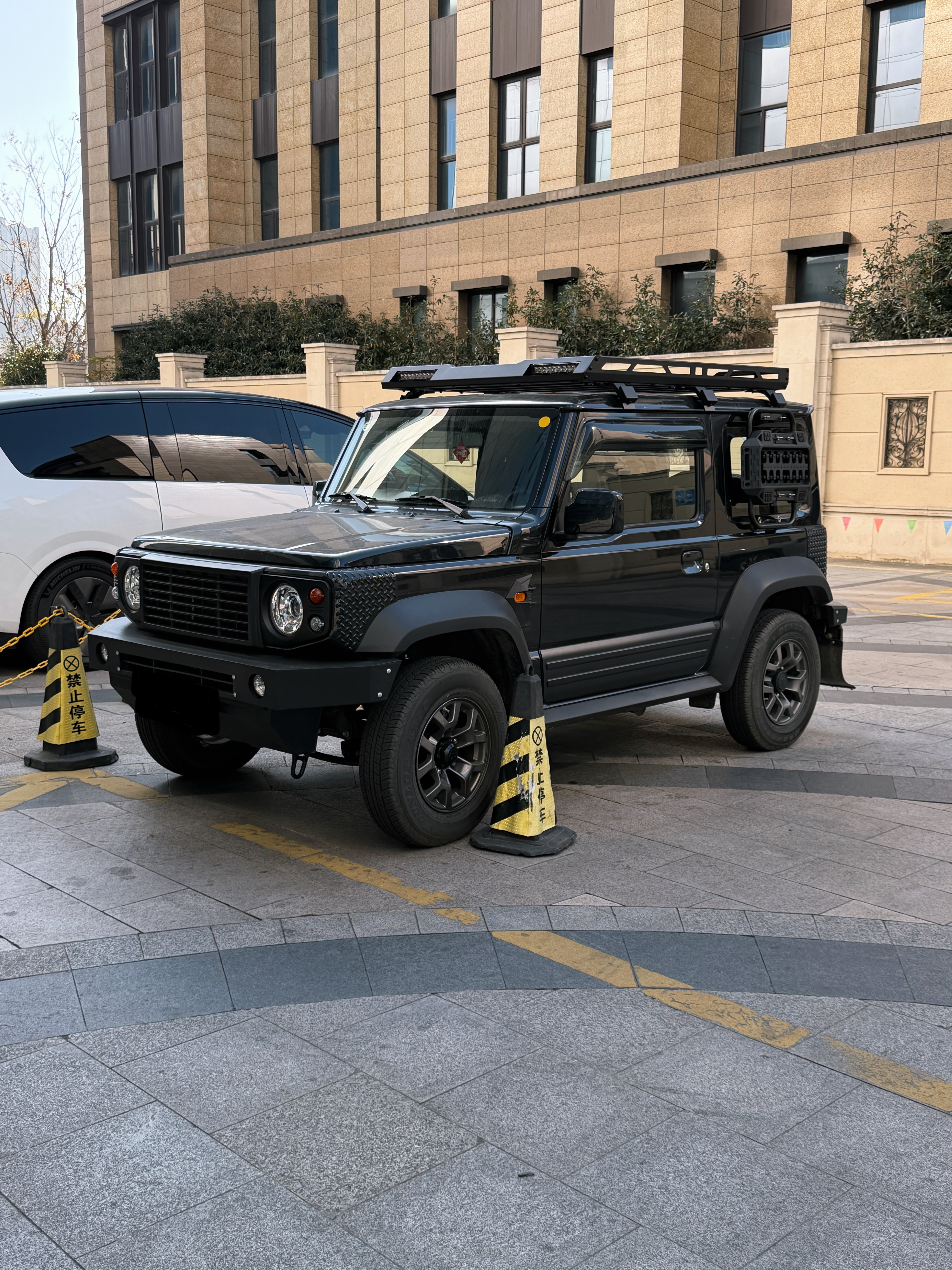 哇,改的是真不错办公室楼下惊现吉姆卫士实车奶凶奶凶的用了好多老路虎卫士的元素尤其这个挡泥板太可爱了就像小孩穿了大人西装,裤脚太长把裤边卷起来的感觉越野改装吉姆尼