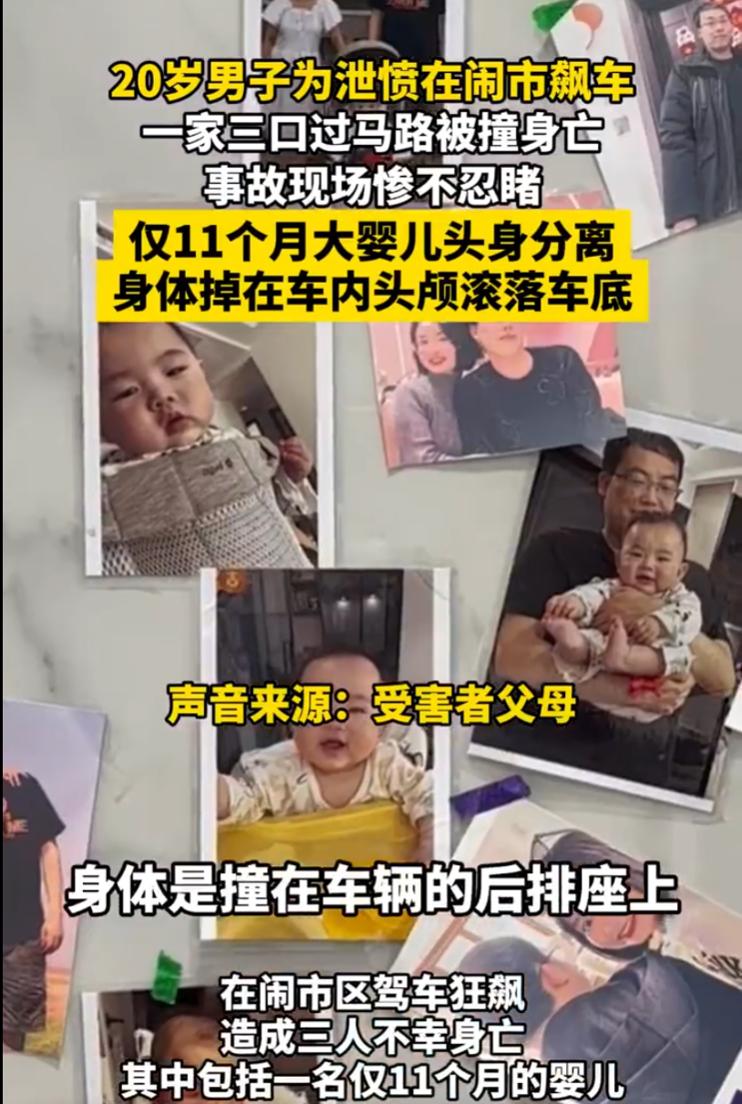 景德镇车祸肇事司机一审死缓很多报道会放大凶手所谓的自首等情节,却似乎有意不提2个细节:1是撞完人后说出“小孩头真硬,把我车玻璃撞了个洞”这种毫无人性的话,还是面对一个才11个月的婴儿被自己撞的身首分离时的反应。2是凶手在庭审时认罪态度很差,一度拒不承认犯罪事实。凶手亲属的态度也不好,还心理威胁“撞人是天灾,抓住不放是人祸”,对受害者亲属造成严重的二次伤害。这些情节都事实上引起了民愤众怒,最后判死缓还他留一条命,无论对受害者一家三口,还是家属,还是知晓案情的普通人,都很难接受。如果任何凶手都可以在作案后,报警外加留在现场,就能换来死缓的话,那未来故意行凶报复社会的歹徒,也可能有样学样,反正咬死自己非主观恶意,撞完人报个警就能留条命,这将起到非常不好的示范。父亲称儿子撞亡一家三口系天灾一家三口被撞亡案家属拒80万私了
